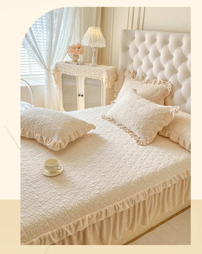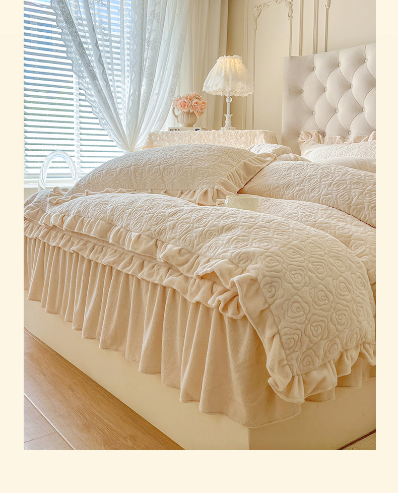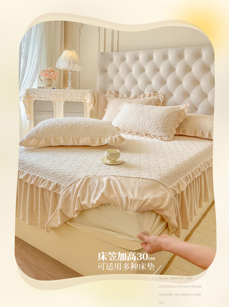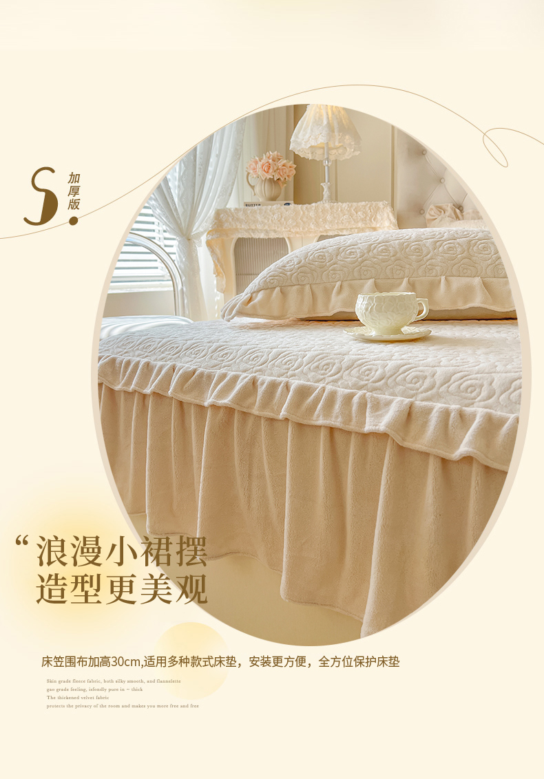 当前位置: 91家纺网 > 商品网购 > 床品套件 > 四件套 > 牛奶绒四件套 > 恋尚 2025新款加厚牛奶绒保暖床笠式床裙四件套-莫奈花园(控价265起) 莫奈花园-奶油白