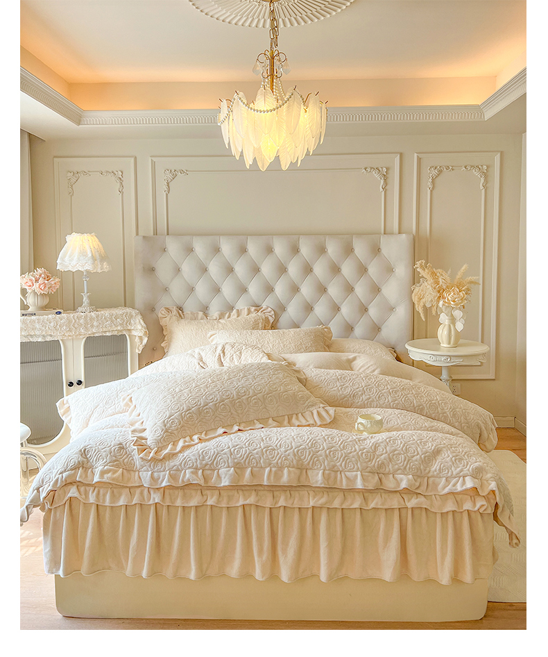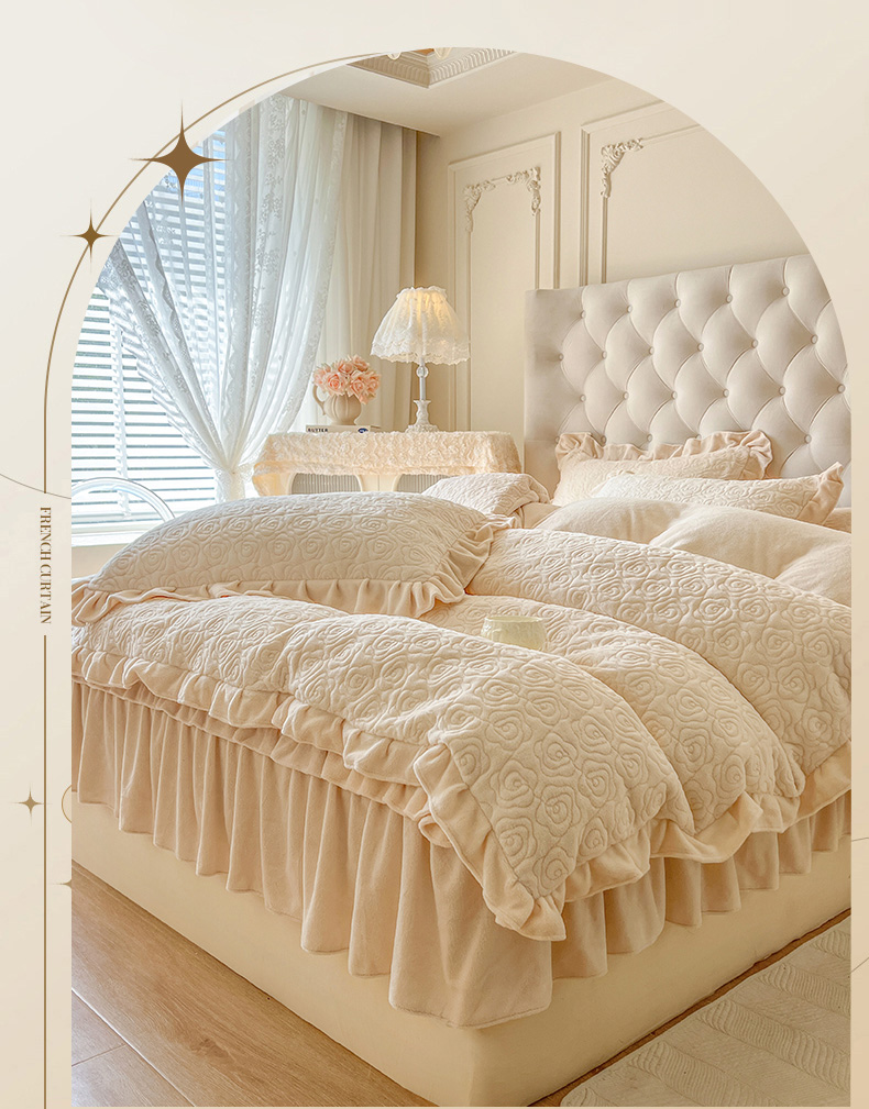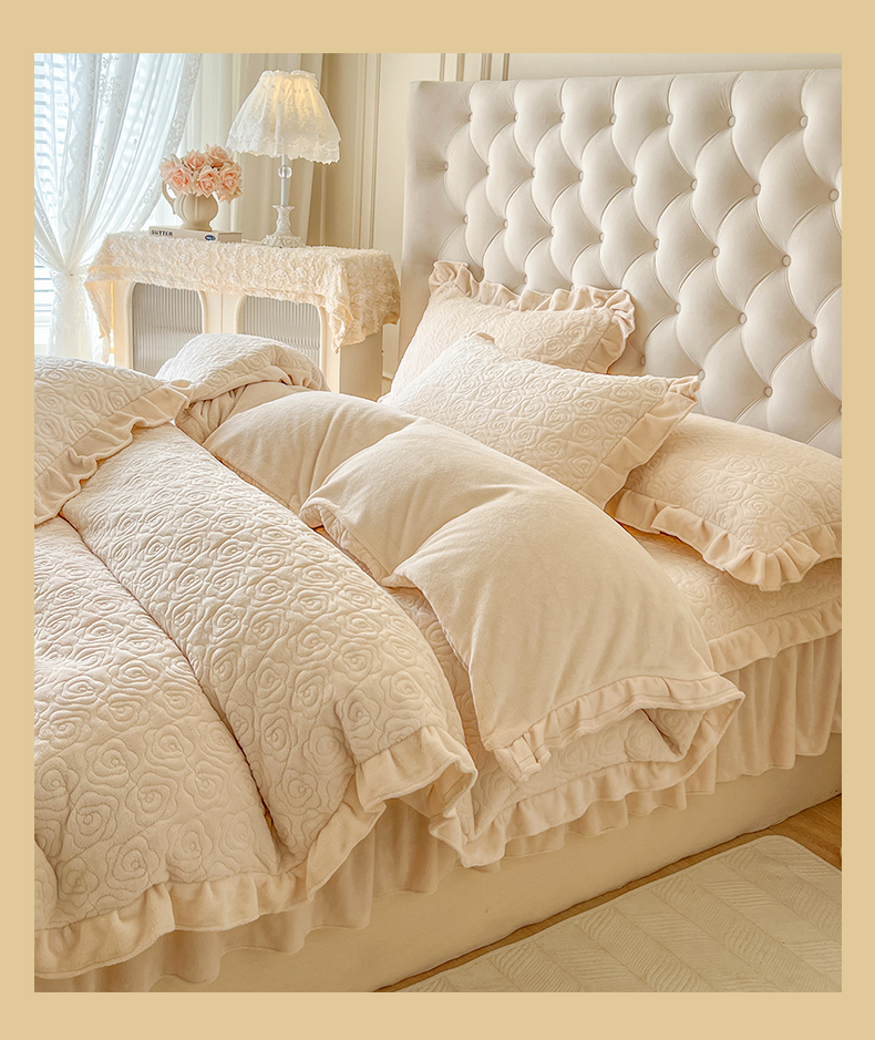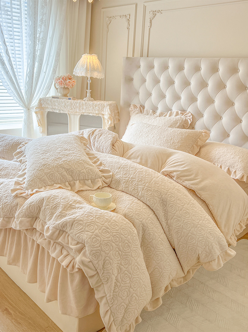 当前位置: 91家纺网 > 商品网购 > 床品套件 > 四件套 > 牛奶绒四件套 > 恋尚 2025新款加厚牛奶绒保暖床笠式床裙四件套-莫奈花园(控价265起) 莫奈花园-奶油白