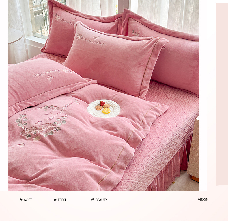 (总)美伦美焕 2025新款加厚雕花绒床盖款四件套-浅叶,浅叶-粉玉,浅叶-卡其,浅叶-绅士灰,浅叶-蔚蓝,浅叶-胭脂红