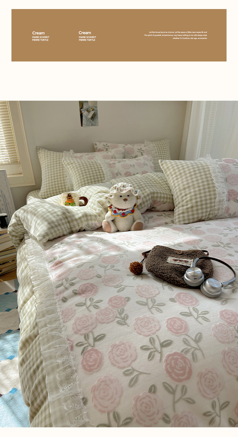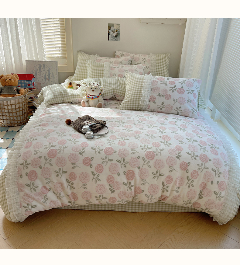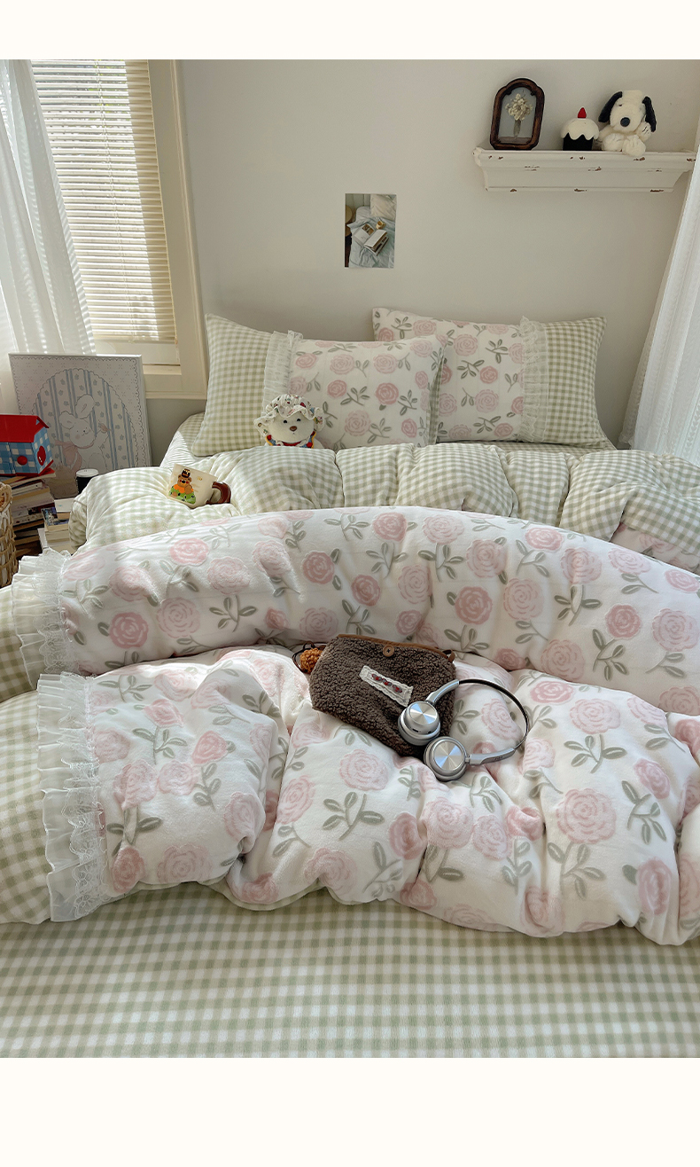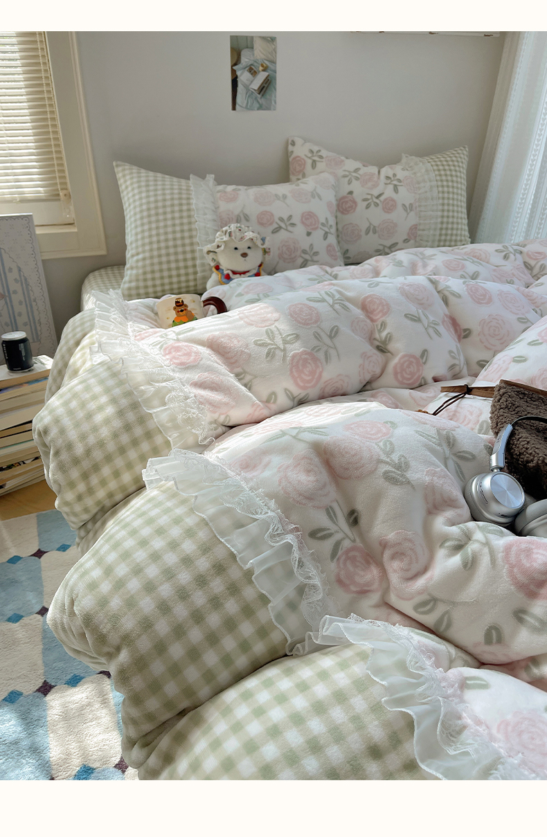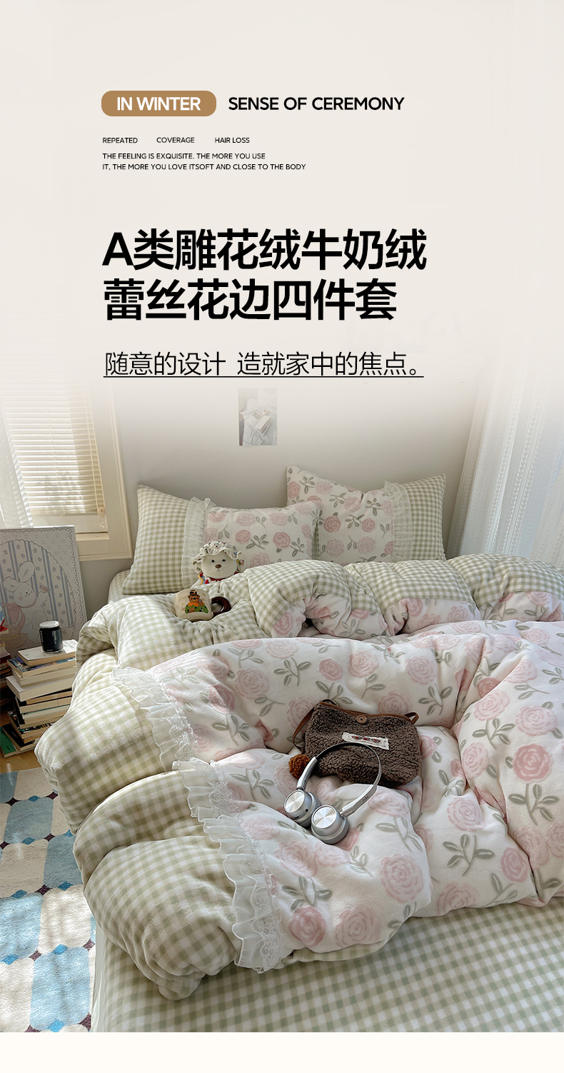 商品名称:瑞莱 2025秋冬高克重韩系蕾丝花边雕花绒四件套 艾莎
