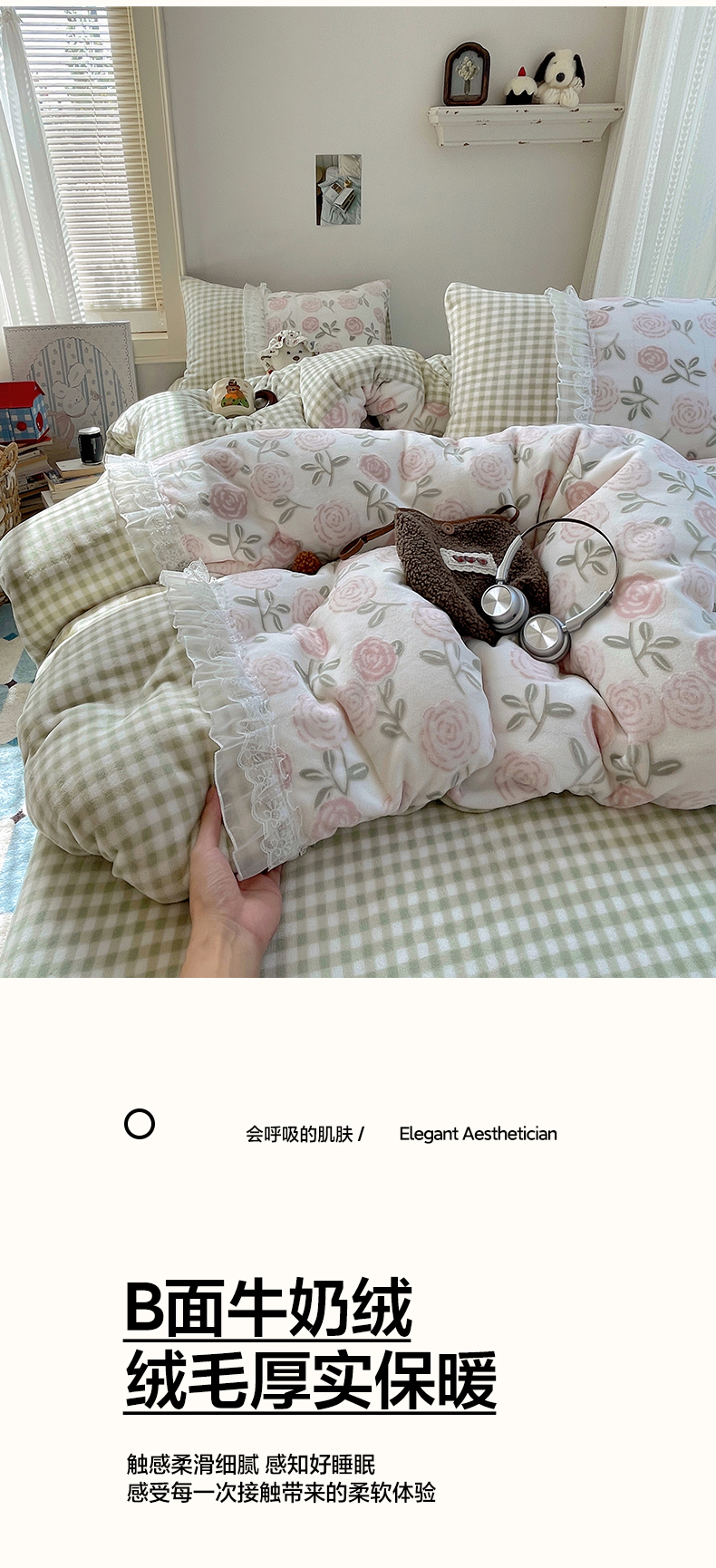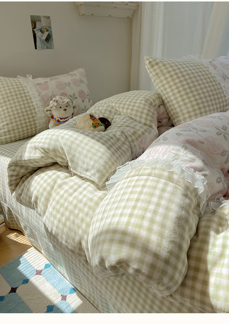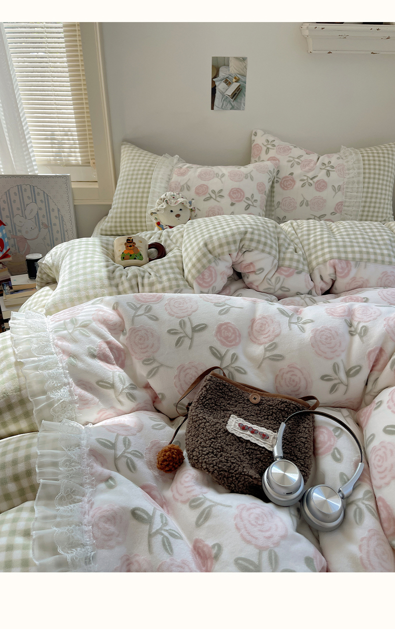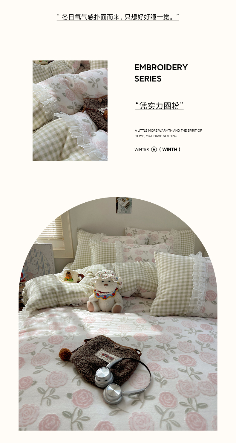 商品名称:瑞莱 2025秋冬高克重韩系蕾丝花边雕花绒四件套 艾莎