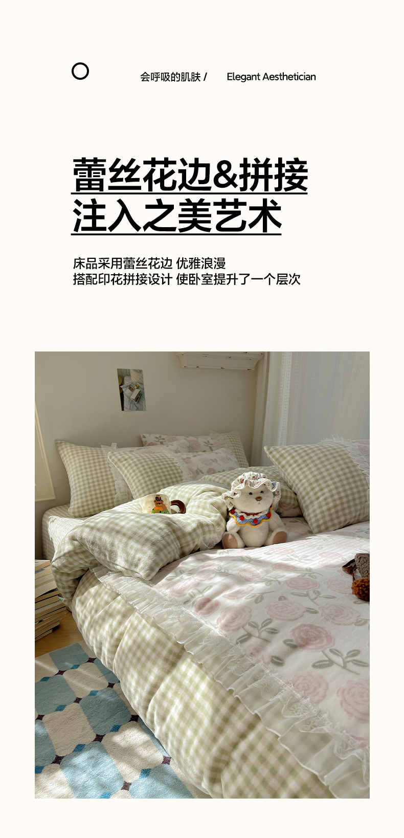 瑞莱 2025秋冬高克重韩系蕾丝花边雕花绒四件套 艾莎