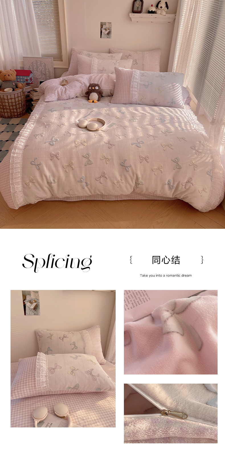 (总)瑞莱 2025新款水洗棉拼接工艺花边款四件套-波点蝴蝶结,波点蝴蝶结-蓝