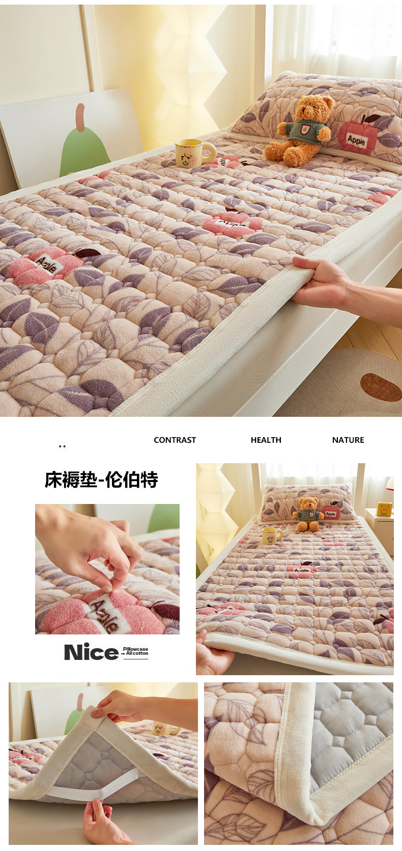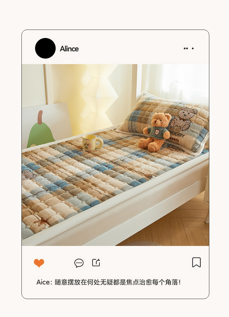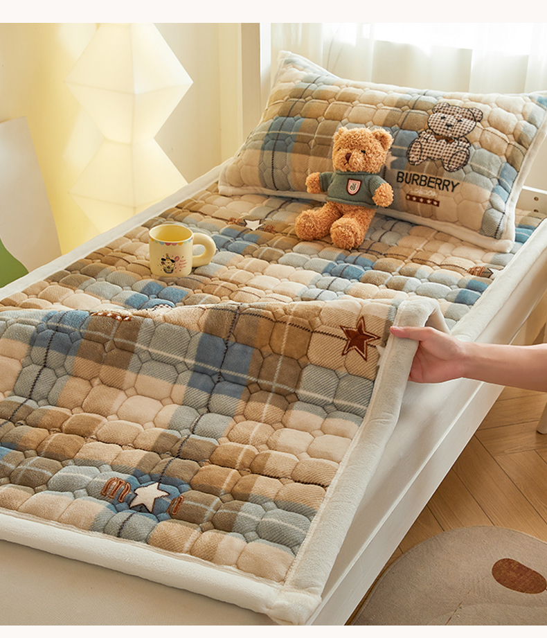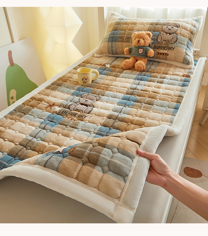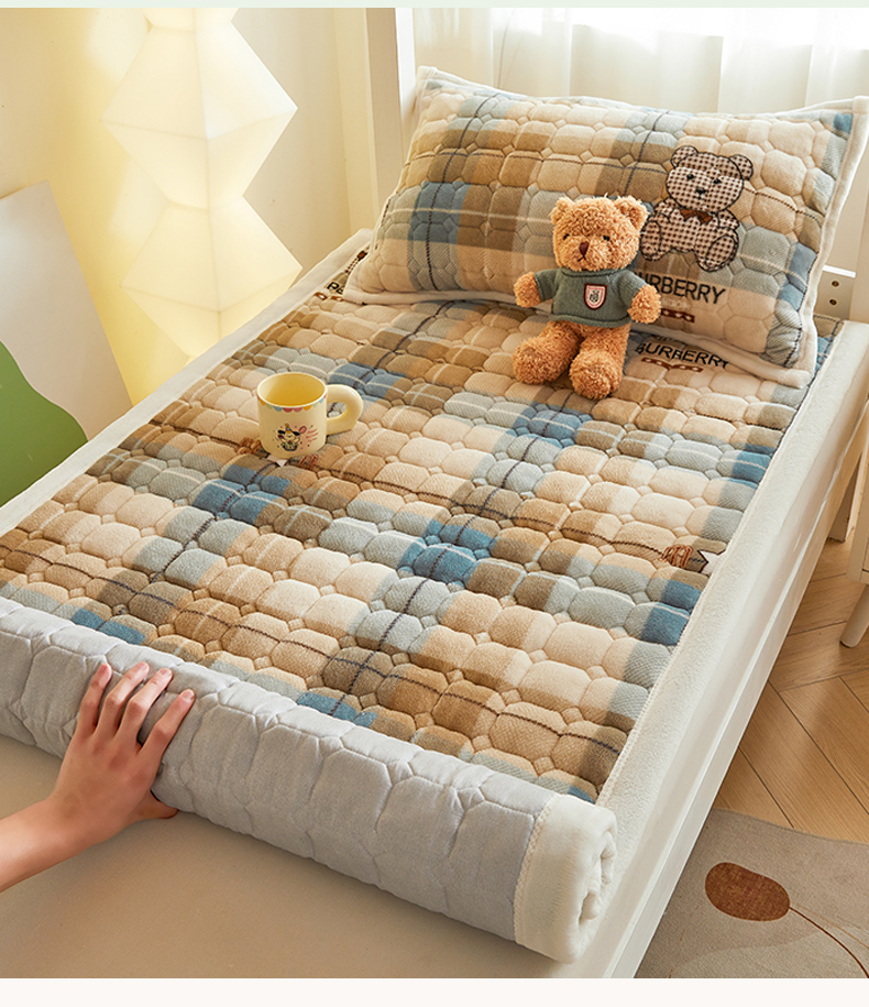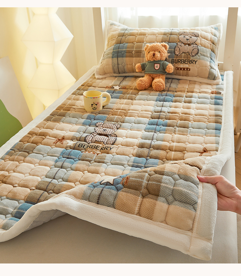 当前位置: 91家纺网 > 商品网购 > 床垫/床褥 > 普通床垫 > 慕木家纺 2025新款学生床牛奶绒印花床垫床护垫 床褥垫-绿格熊