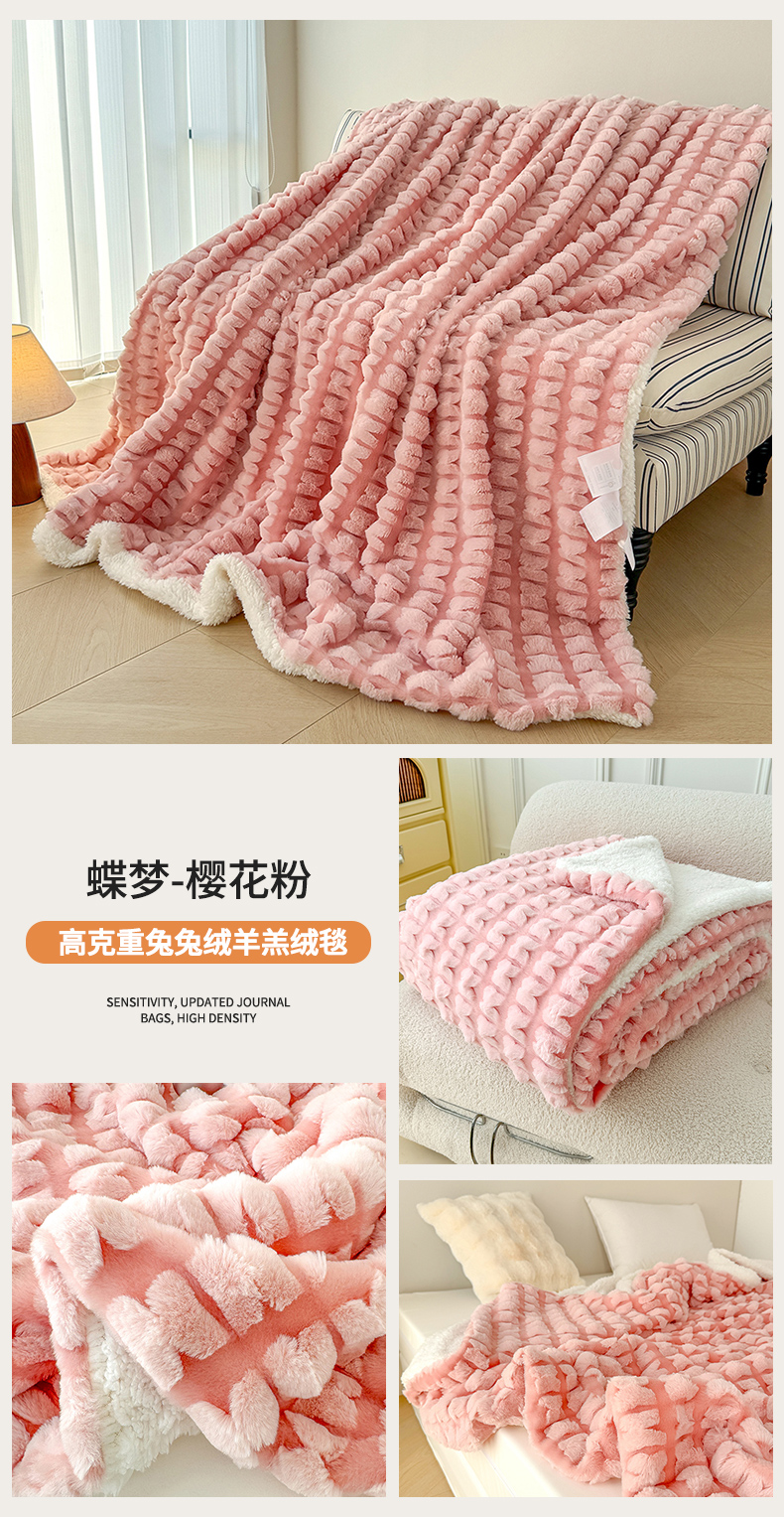 (总)乐坊 2025新款高克重蝶梦兔毛毯羊羔绒毛毯