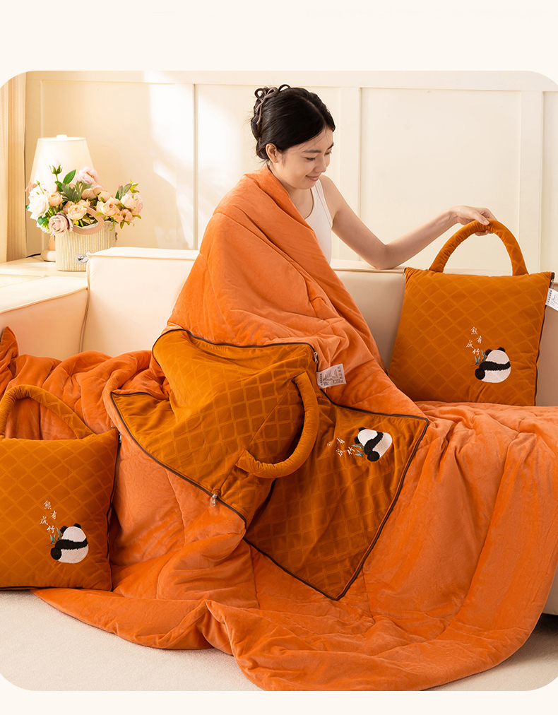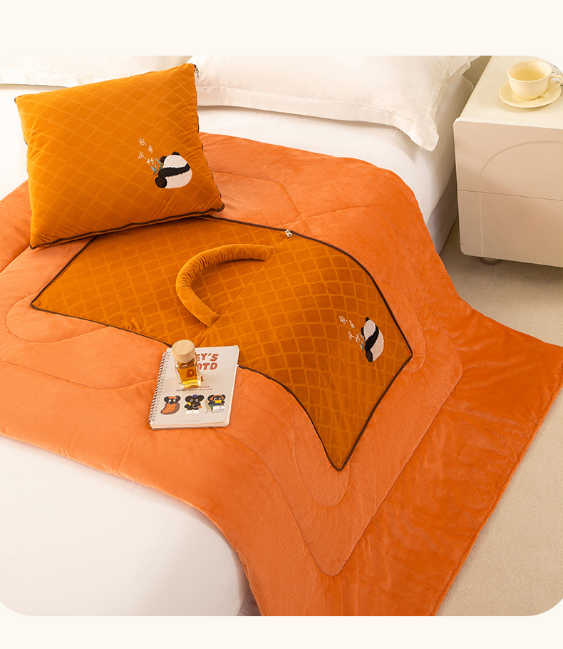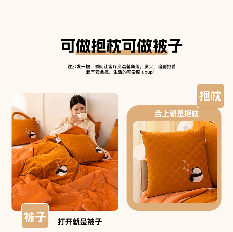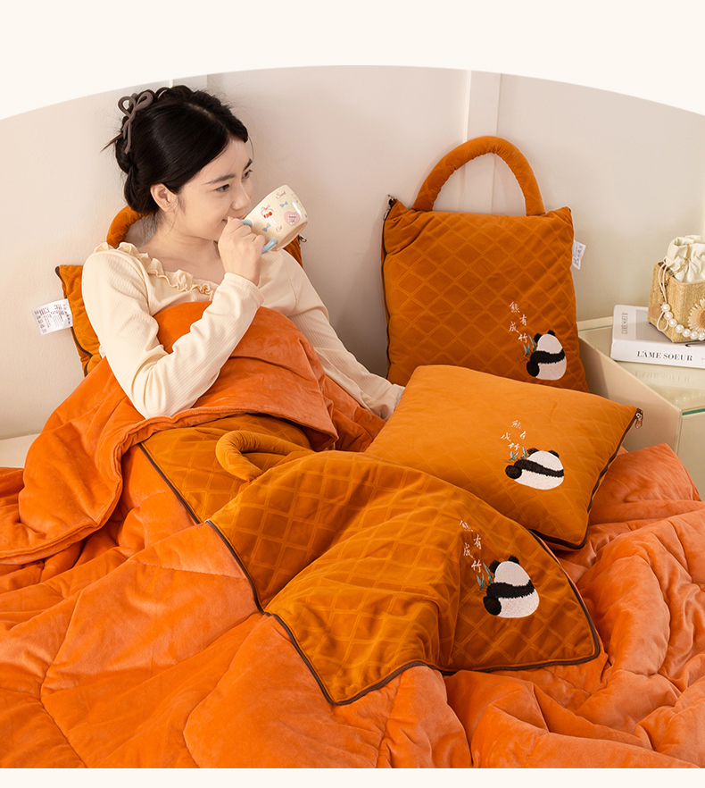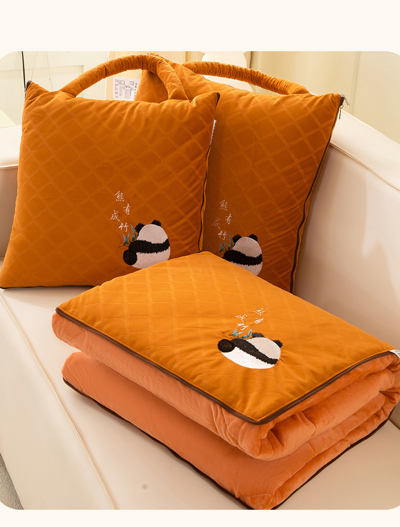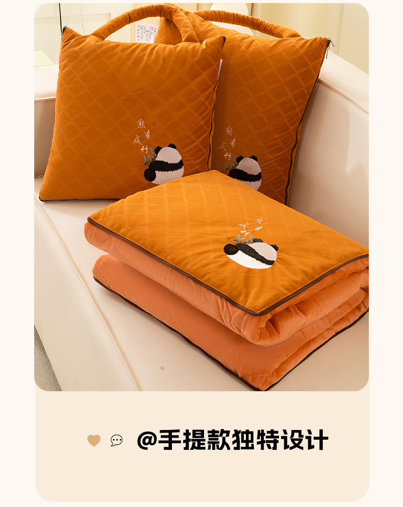 多今家纺 2025新款便携手提式水晶绒玛莎绒刺绣抱枕被子-熊有成竹系列 熊有成竹-皇家橙