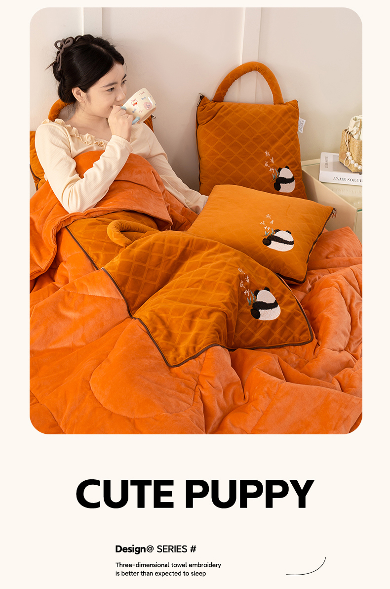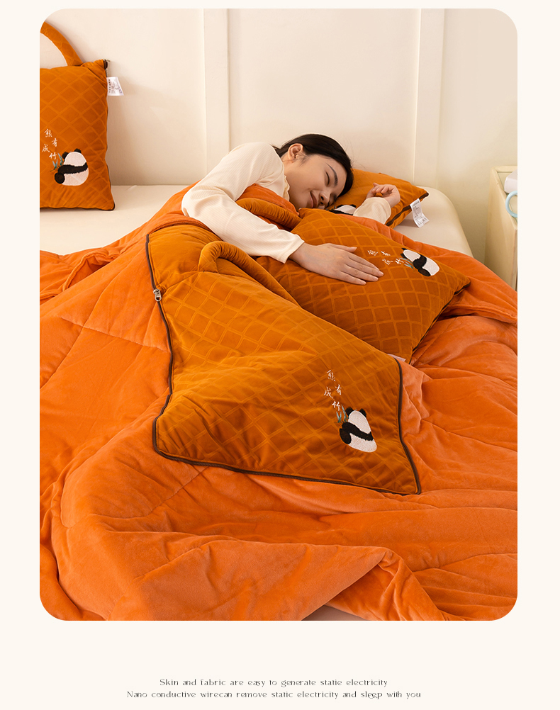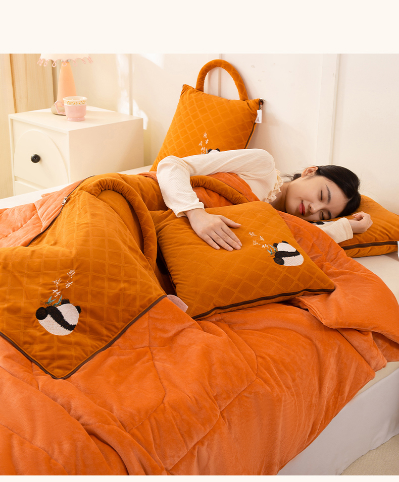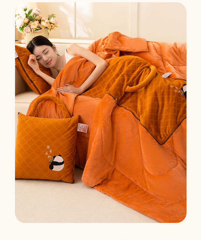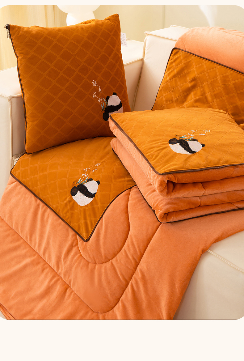 多今家纺 2025新款便携手提式水晶绒玛莎绒刺绣抱枕被子-熊有成竹系列 熊有成竹-皇家橙