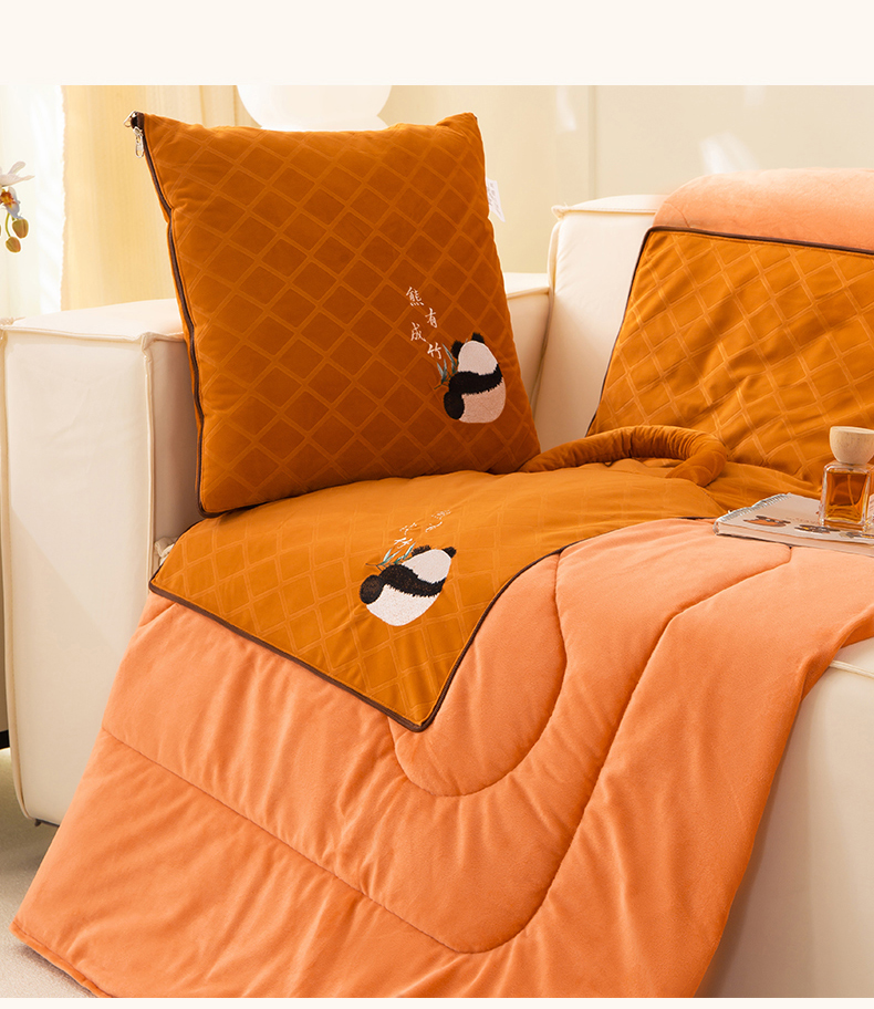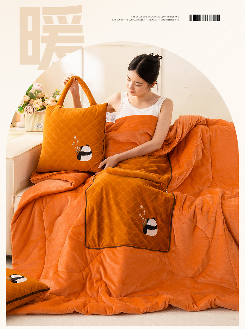 商品名称:多今家纺 2025新款便携手提式水晶绒玛莎绒刺绣抱枕被子-熊有成竹系列 熊有成竹-皇家橙