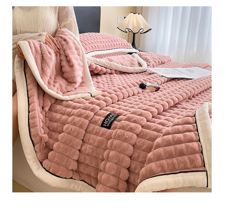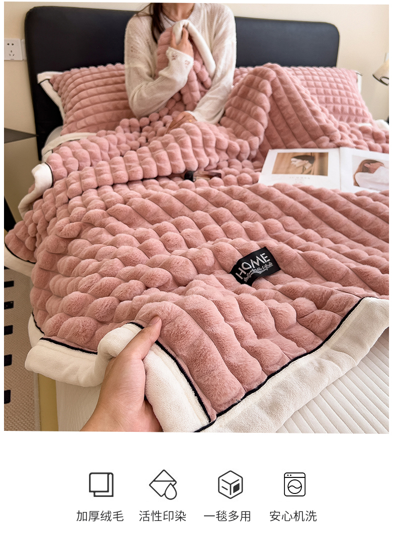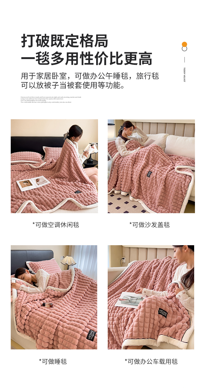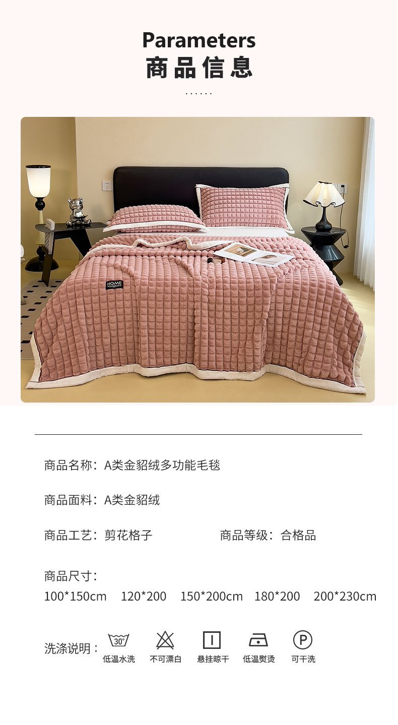 叠派家纺 2025新款毛毯A类金貂绒毛毯剪格多功能毛毯盖毯毛毯(可供跨境外贸抽空热款首选) 金貂绒-豆沙粉