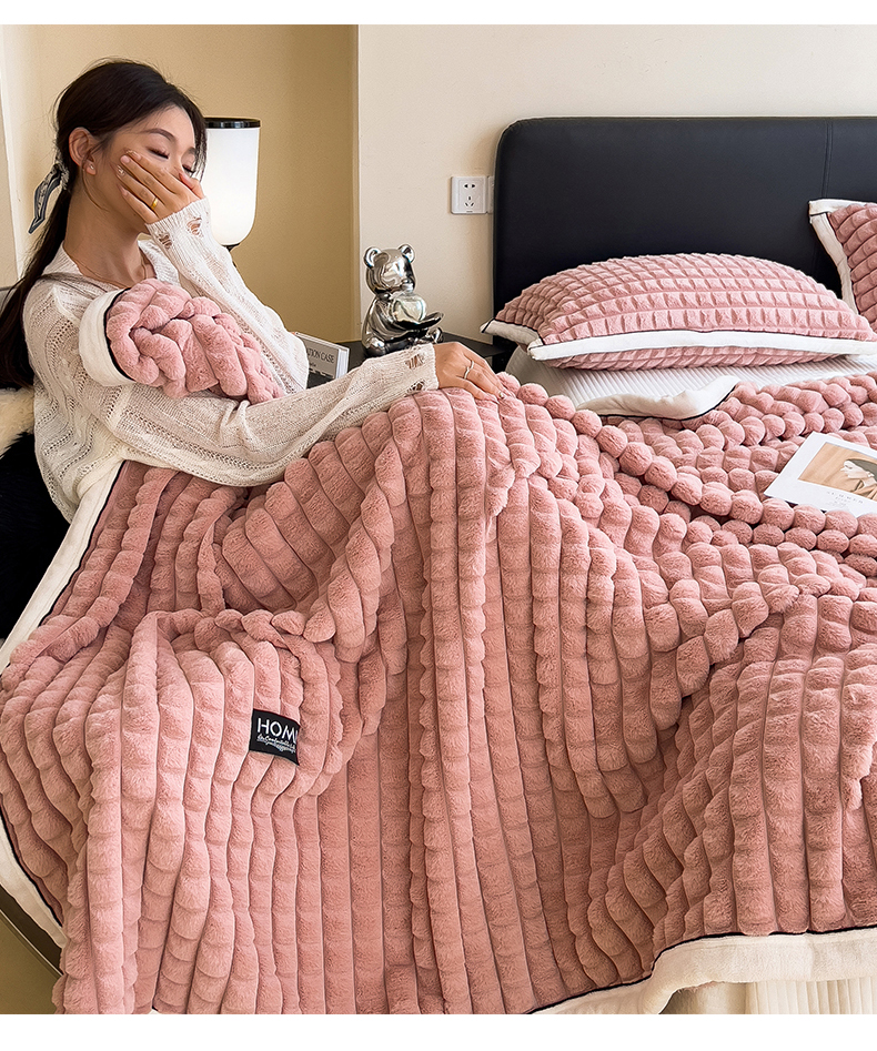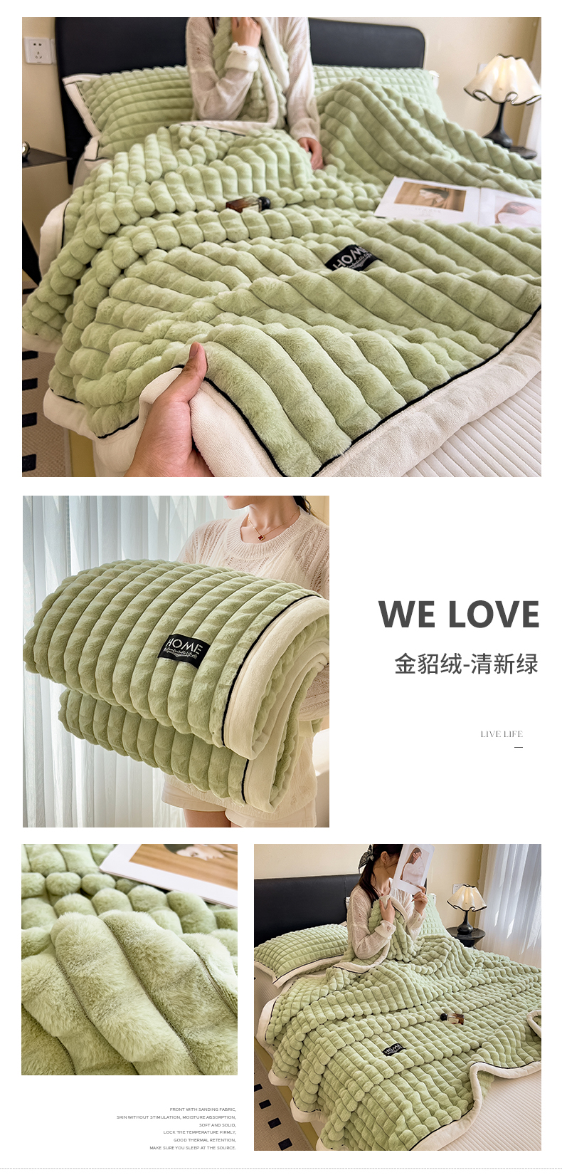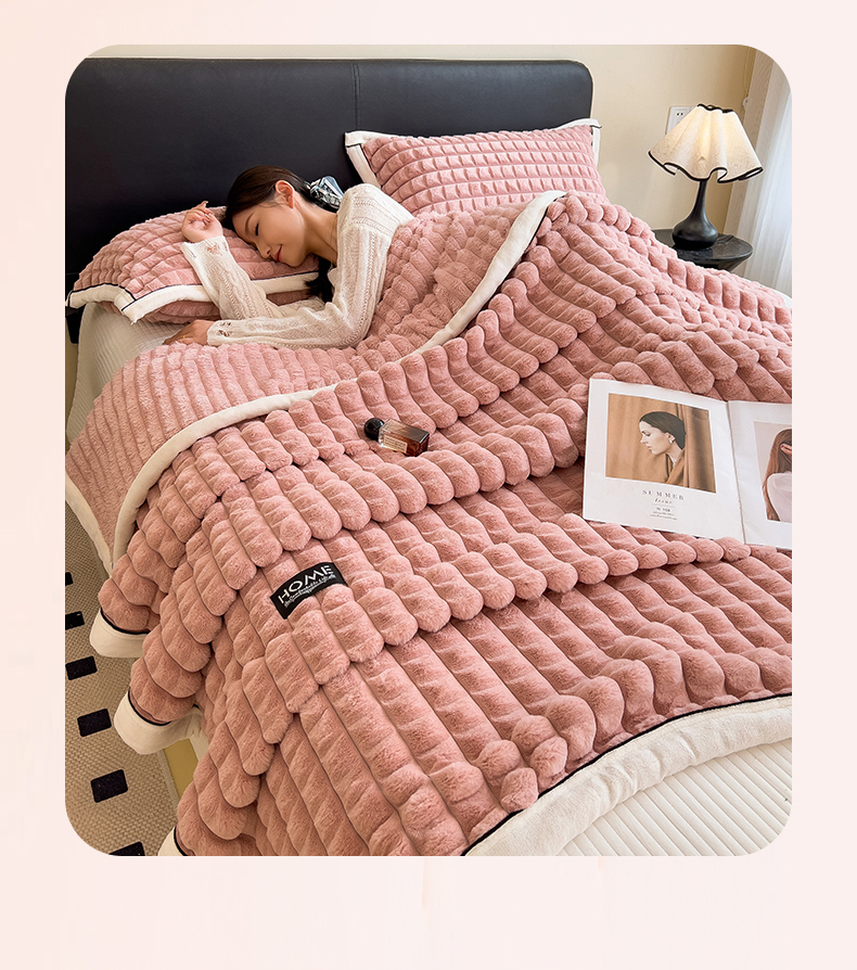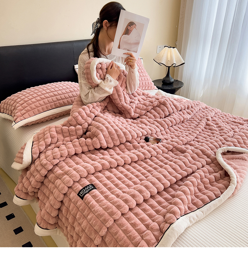 叠派家纺 2025新款毛毯A类金貂绒毛毯剪格多功能毛毯盖毯毛毯(可供跨境外贸抽空热款首选) 金貂绒-豆沙粉