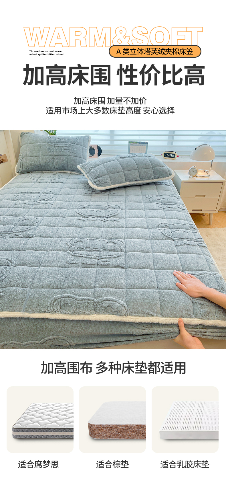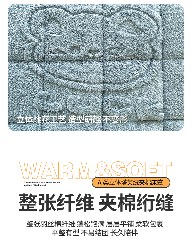 (总)予梦家纺 2025新款塔芙绒夹棉床笠单床笠,萌萌熊 苍蓝,萌萌熊 果绿,萌萌熊 卡其,萌萌熊 星灰,星梦格 苍蓝,星梦格 果绿,星梦格 卡其,星梦格 星灰