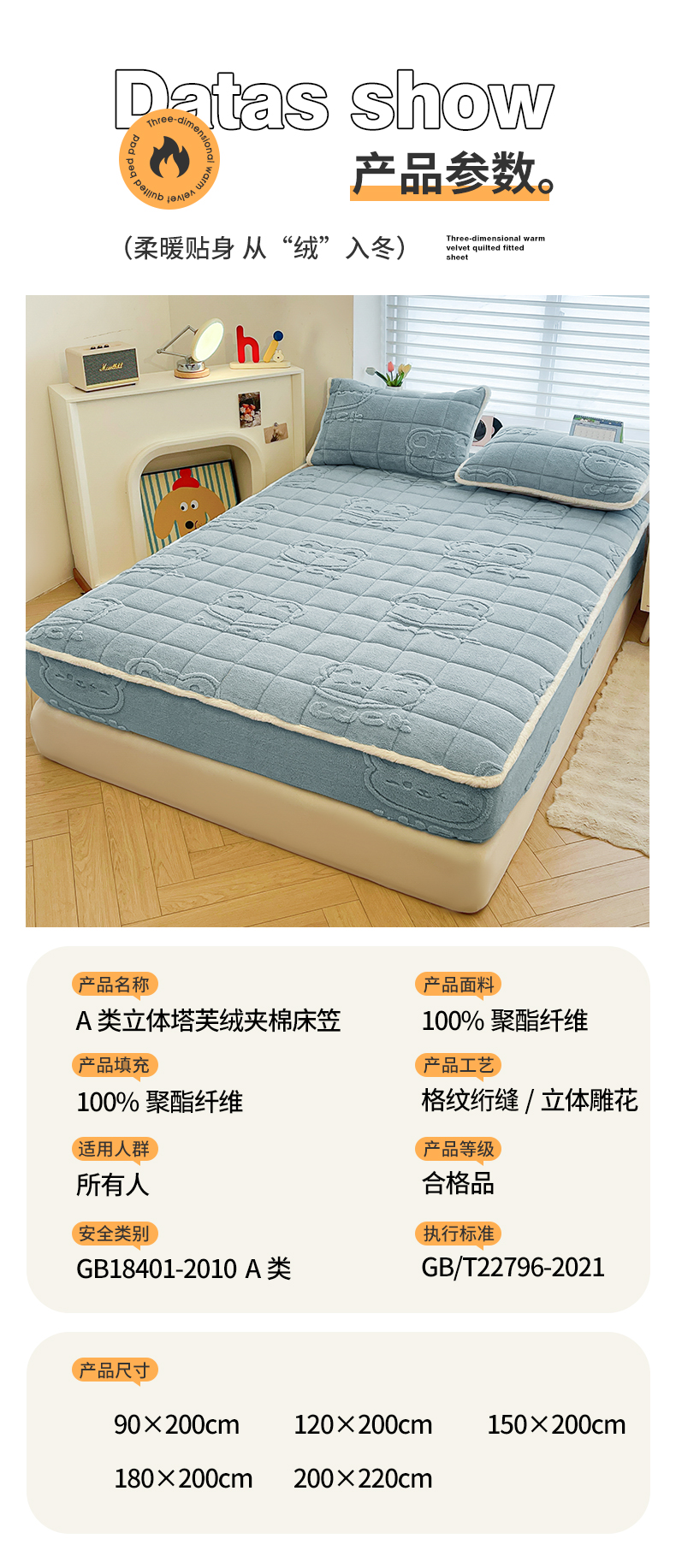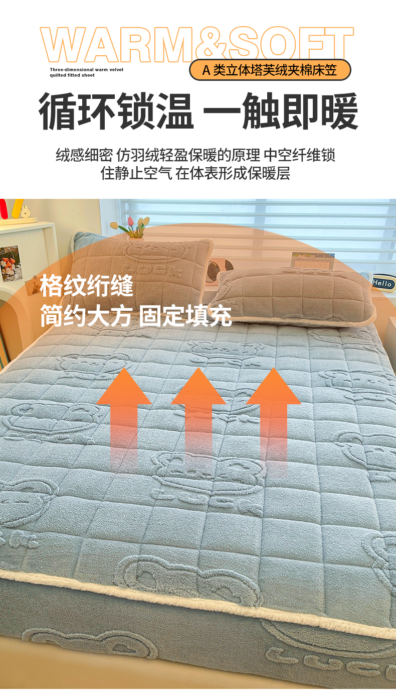 (总)予梦家纺 2025新款塔芙绒床护垫床垫保护套,萌萌熊 苍蓝,萌萌熊 果绿,萌萌熊 卡其,萌萌熊 星灰,星梦格 苍蓝,星梦格 果绿,星梦格 卡其,星梦格 星灰