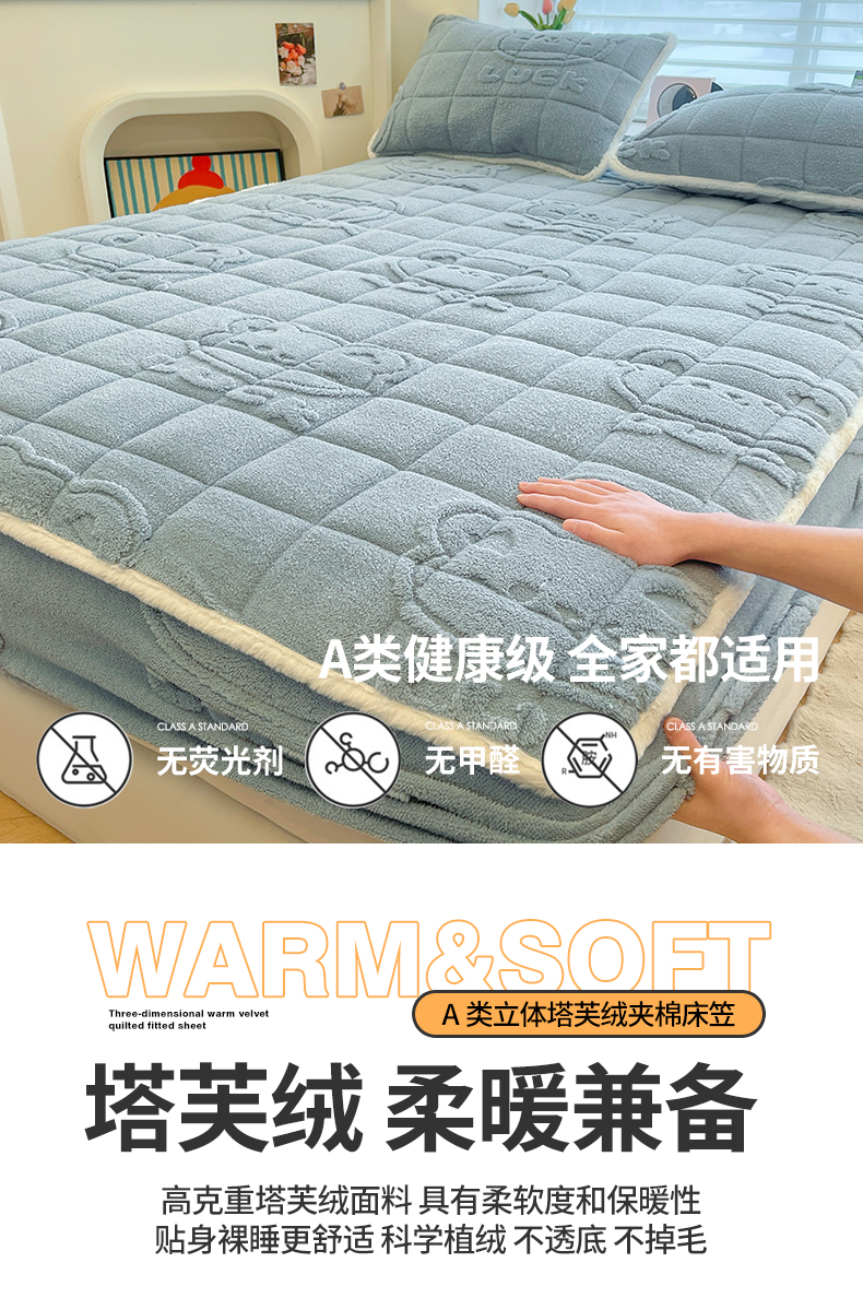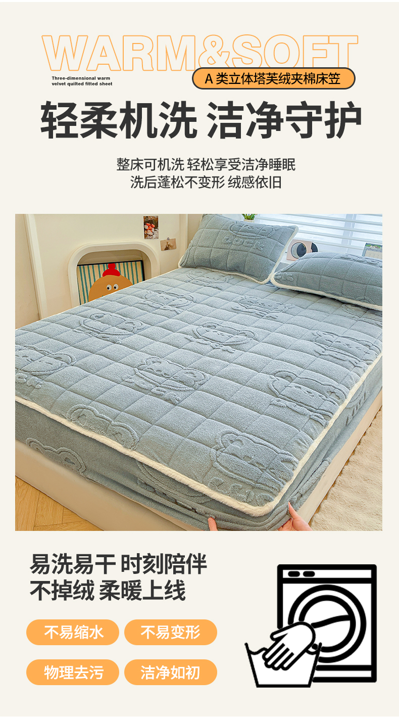 (总)予梦家纺 2025新款塔芙绒加厚夹棉床笠床垫保护套,萌萌熊 苍蓝,萌萌熊 果绿,萌萌熊 卡其,萌萌熊 星灰,星梦格 苍蓝,星梦格 果绿,星梦格 卡其,星梦格 星灰