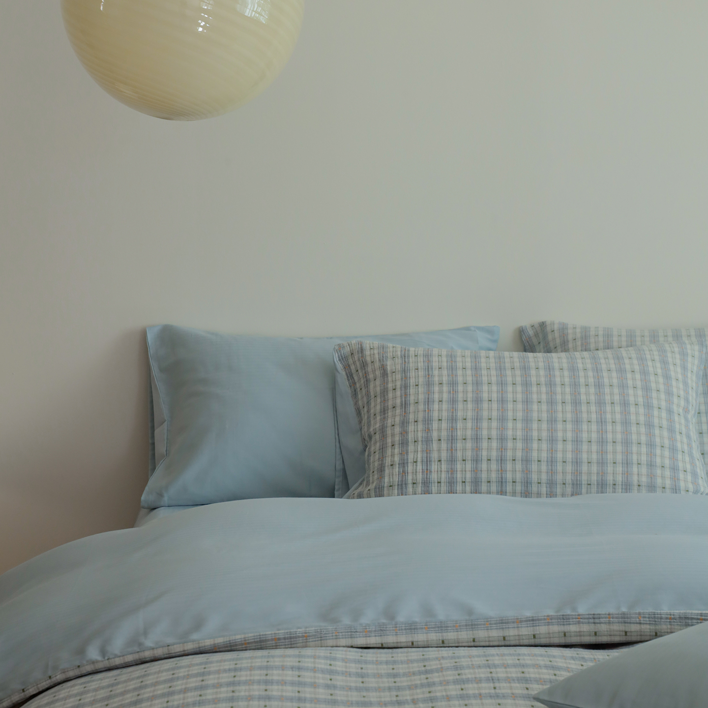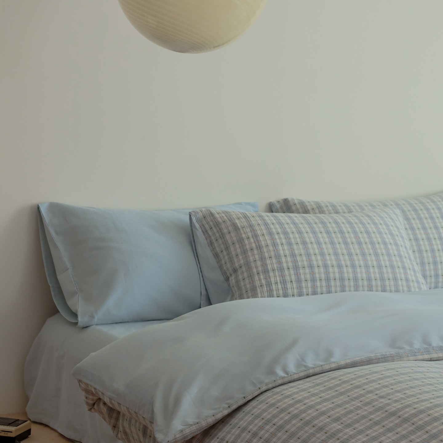 (总)小春日和 2025新款全棉提花条纹四件套纯棉人字纹水洗提花绑带款四件套民宿四件套纯色床单1.8床笠简约被套,云漫