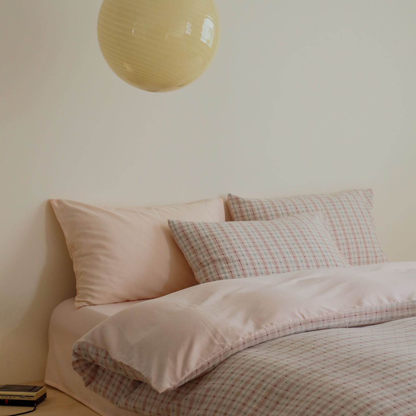 (总)小春日和 2025新款纯棉提花条纹四件套全棉简约民宿高端床品四件套水洗提花人字纹床单1.8床笠加大床单,喜又-粉,喜又-蓝