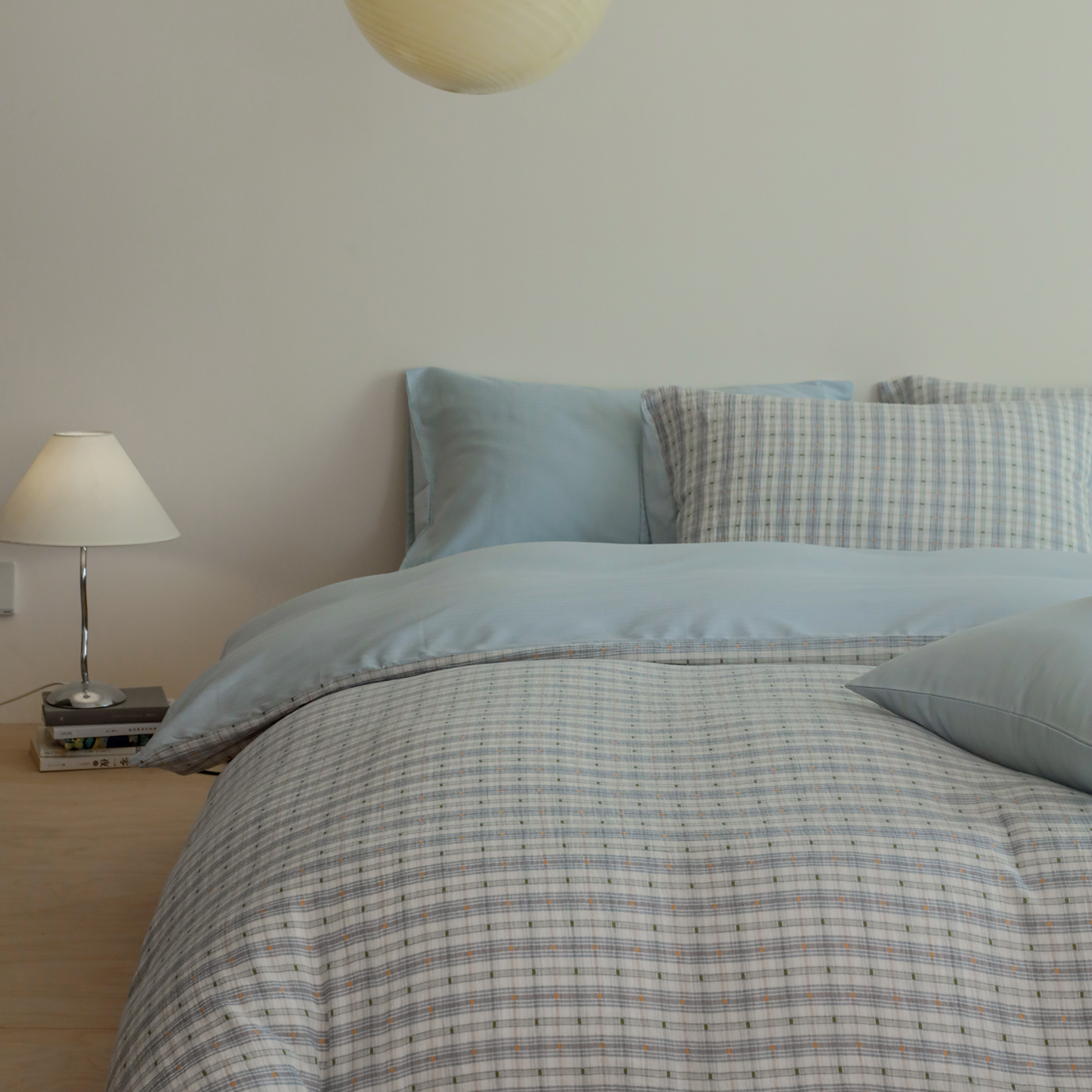(总)小春日和 2025新款全棉双层纱A类母婴四件套纯棉提花纱布床上用品四件套纯色床单亲肤被套民宿套件1.8床笠,叙言-山雾,叙言-粉,叙言-蓝