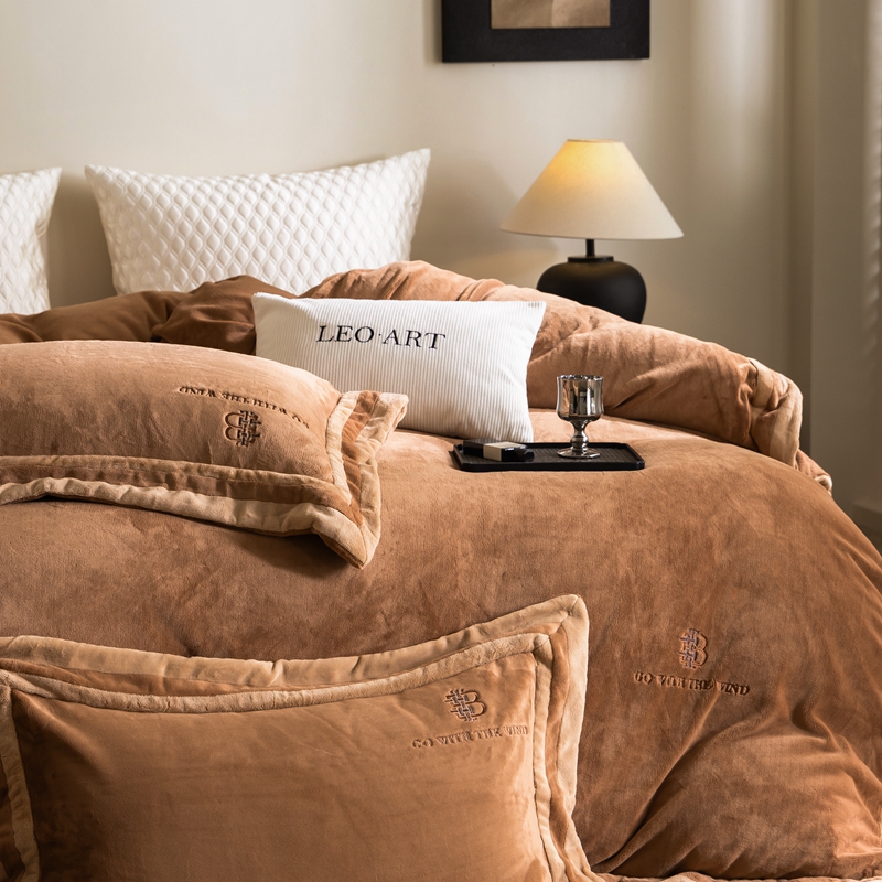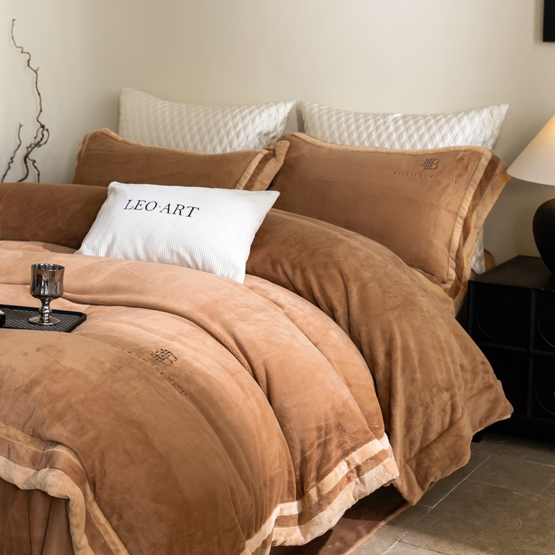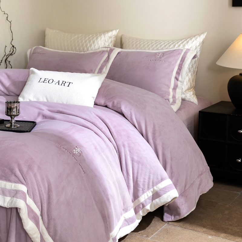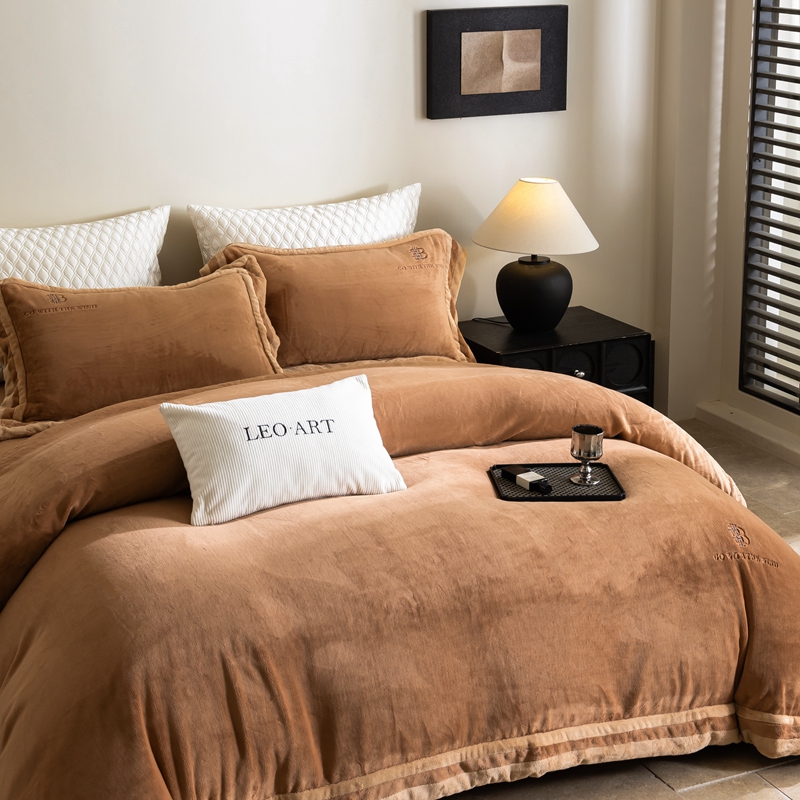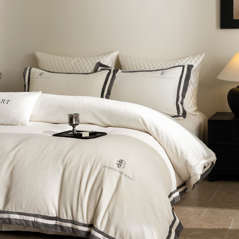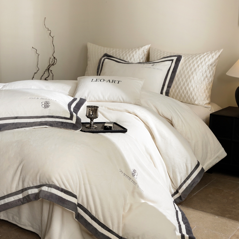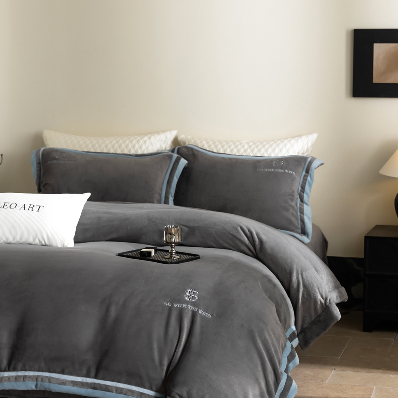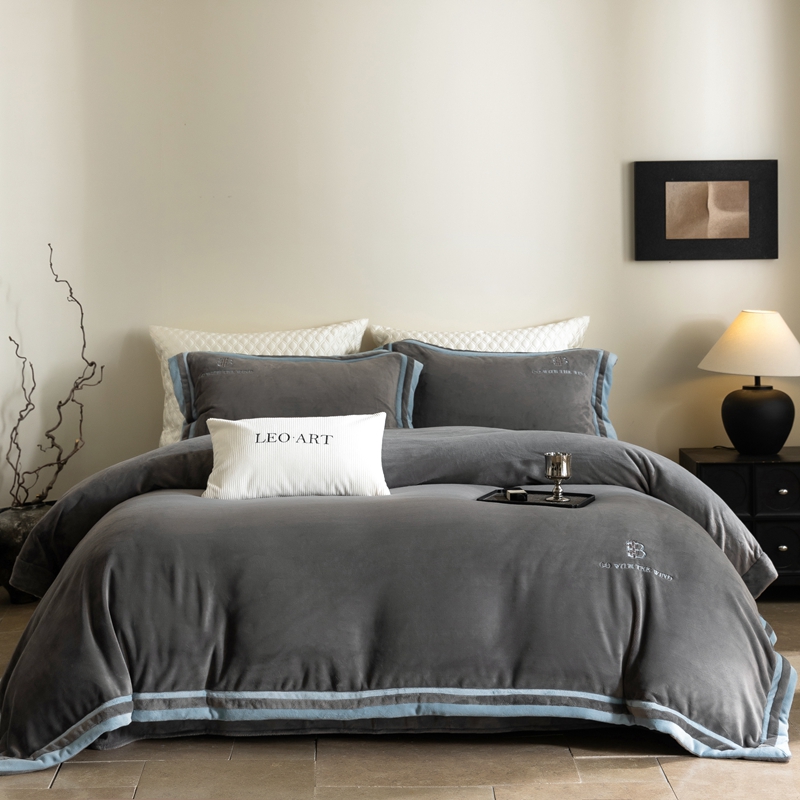涞澳家纺 2025秋冬新款亲肤舒适牛奶绒四件套-简慕 简慕-灰色