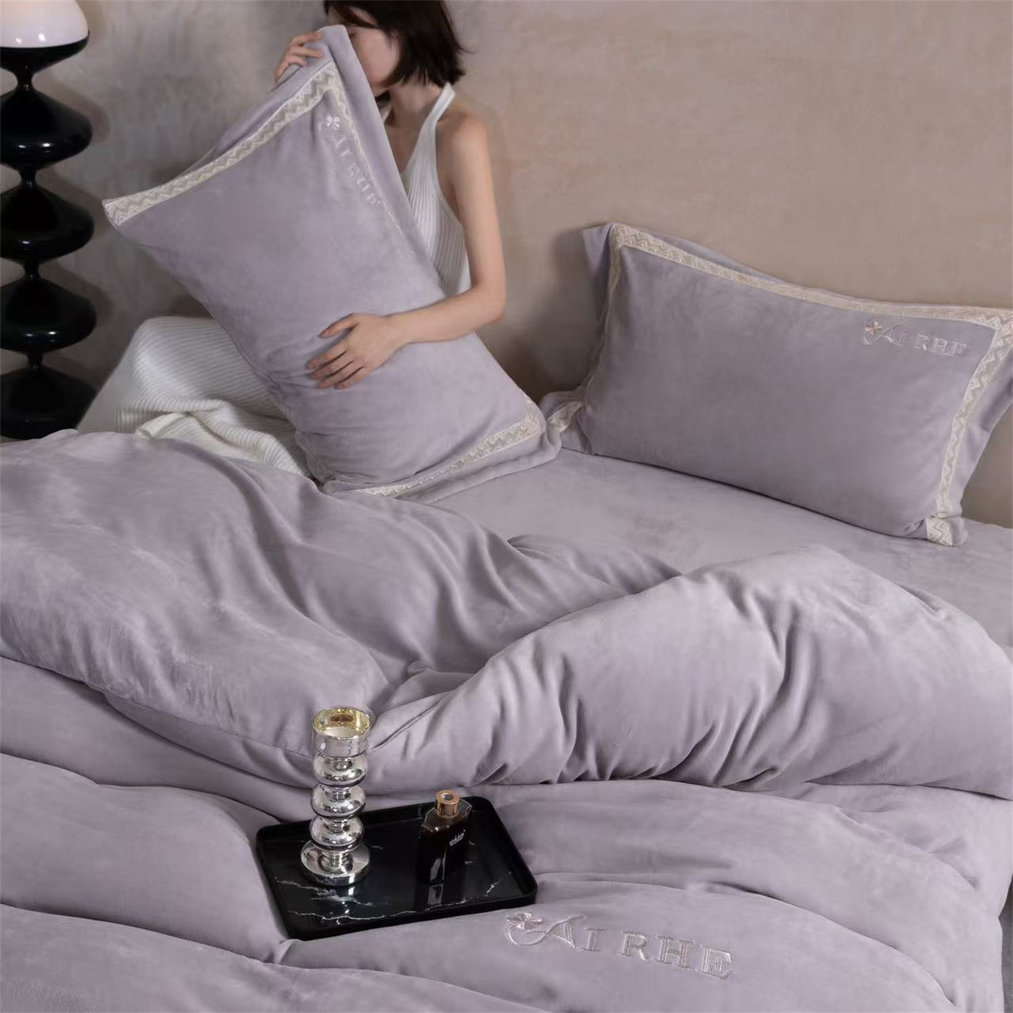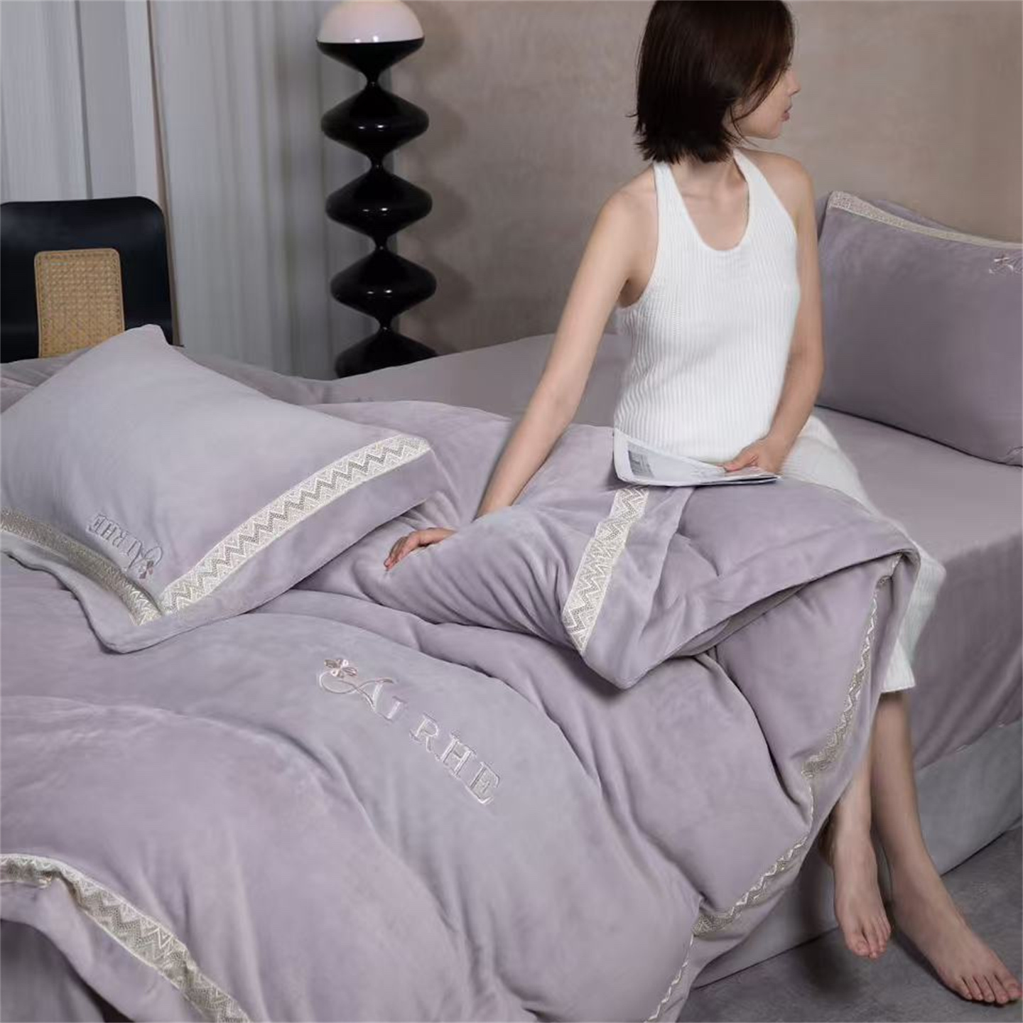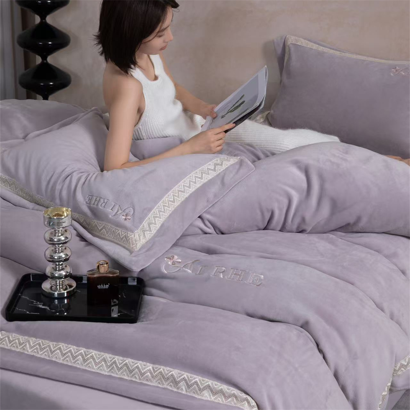 玖琳家纺 2025新款双面240克全消牛奶绒铂金牛奶绒四件套-罗伦丝系列 魅力紫