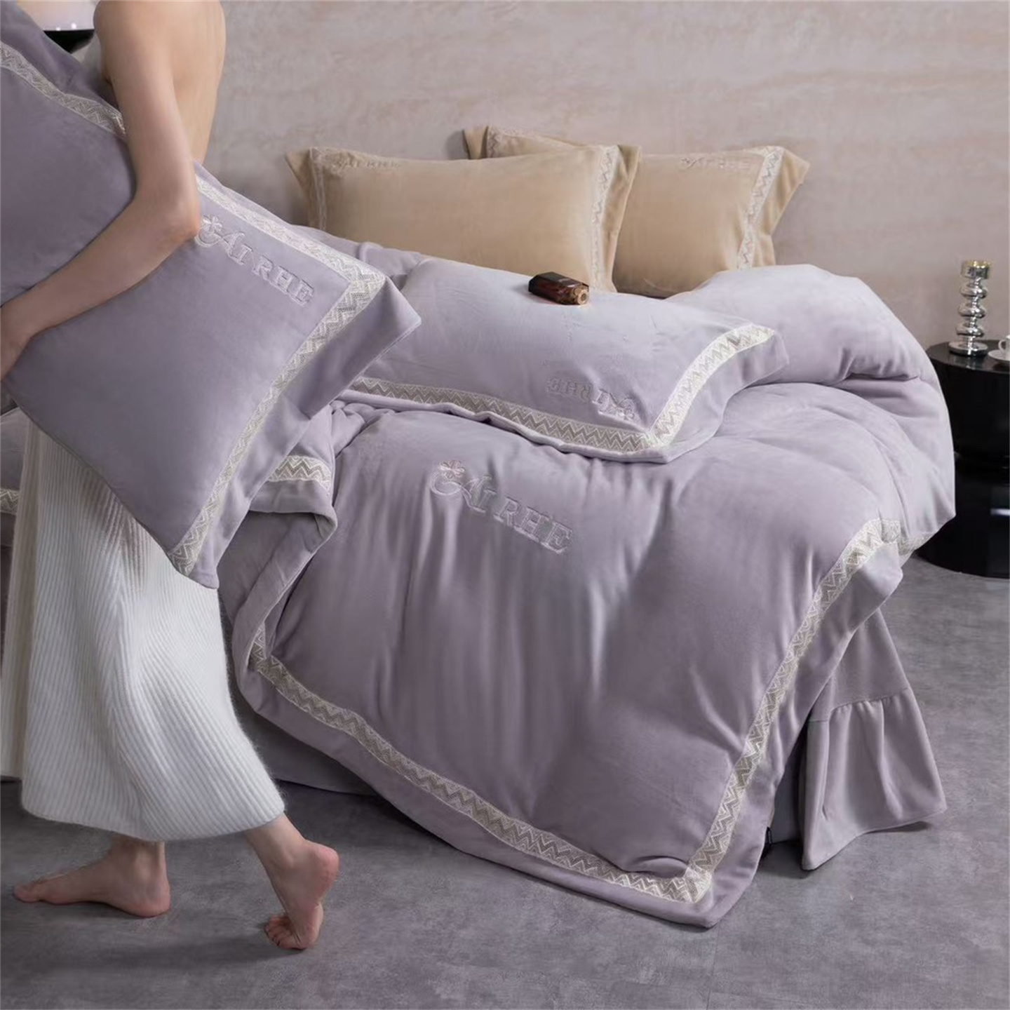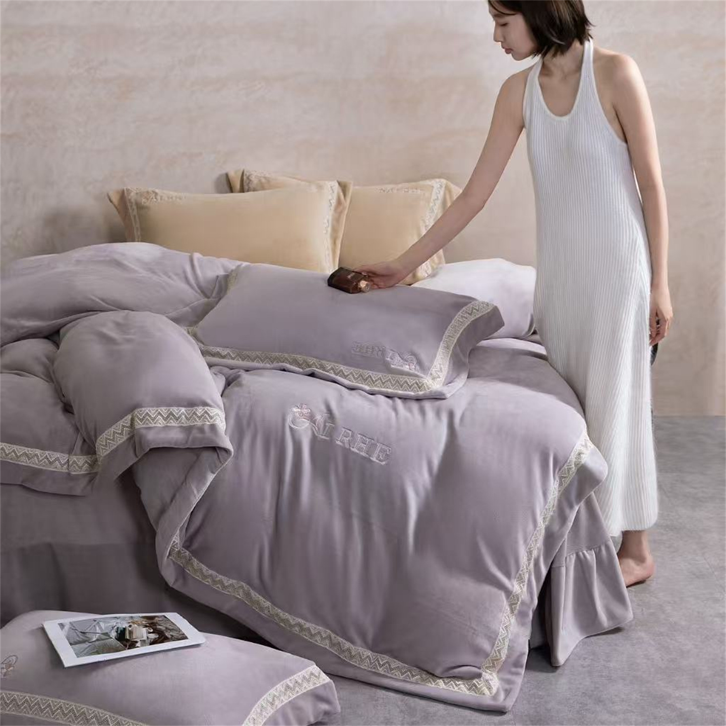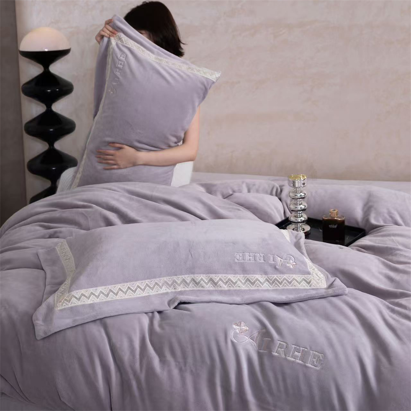 玖琳家纺 2025新款双面240克全消牛奶绒铂金牛奶绒四件套-罗伦丝系列 魅力紫