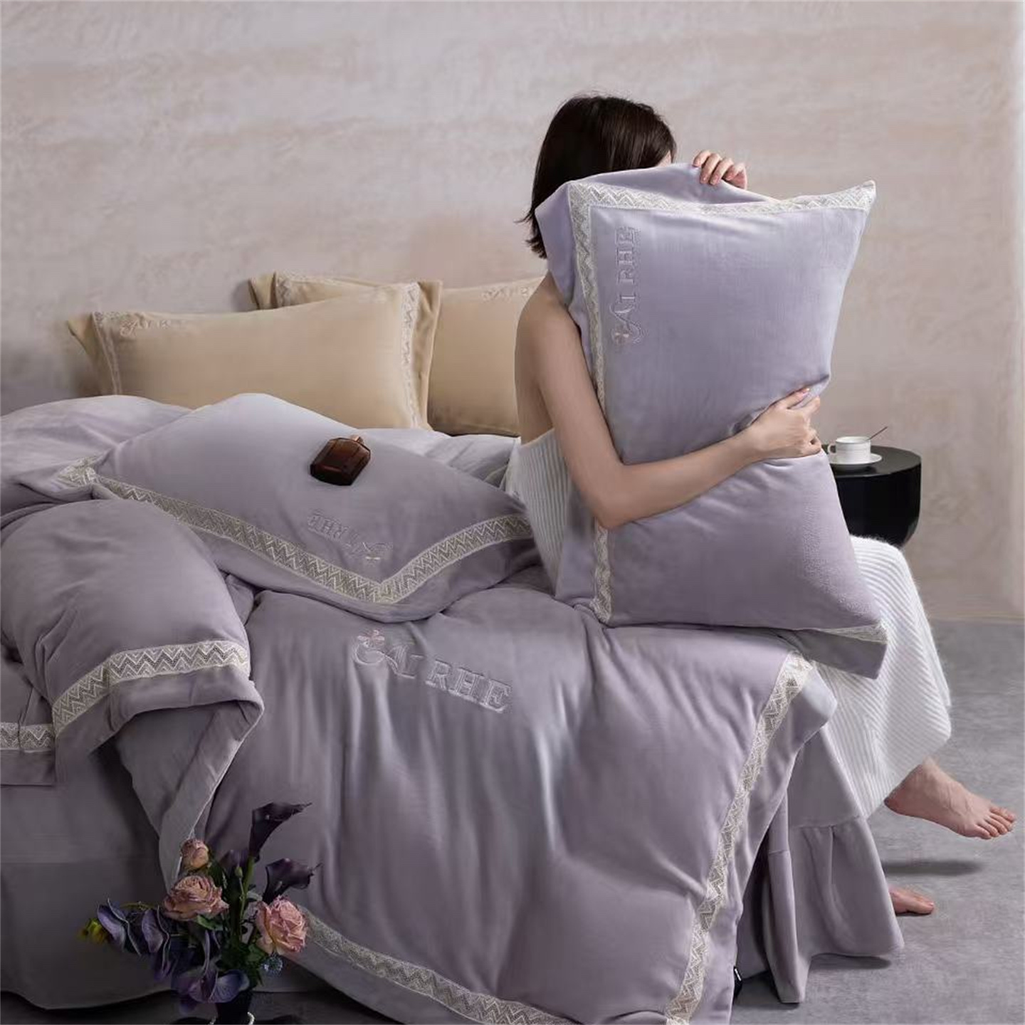 商品名称:玖琳家纺 2025新款双面240克全消牛奶绒铂金牛奶绒四件套-罗伦丝系列 魅力紫