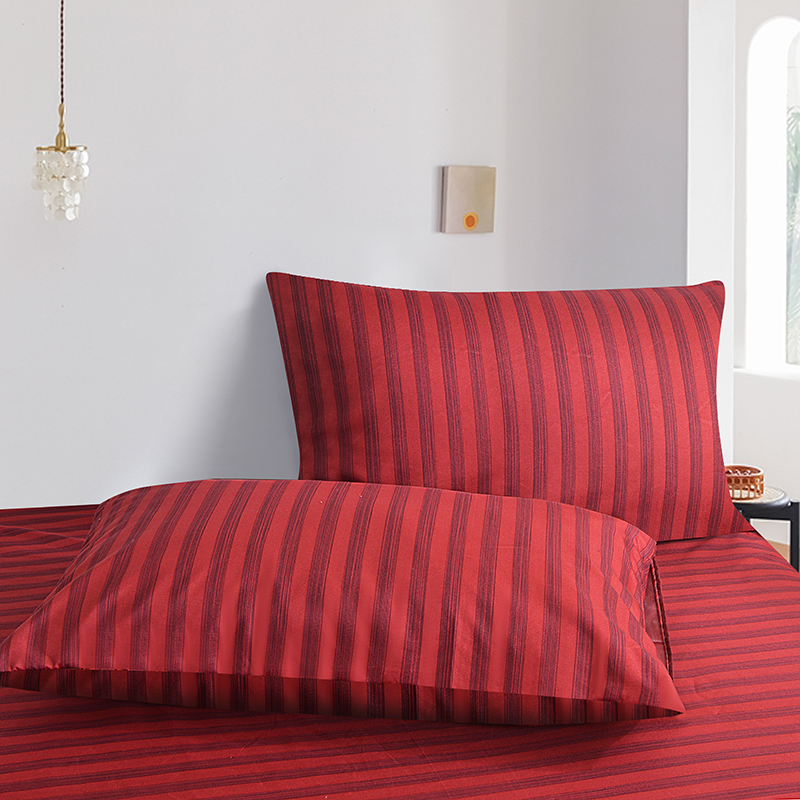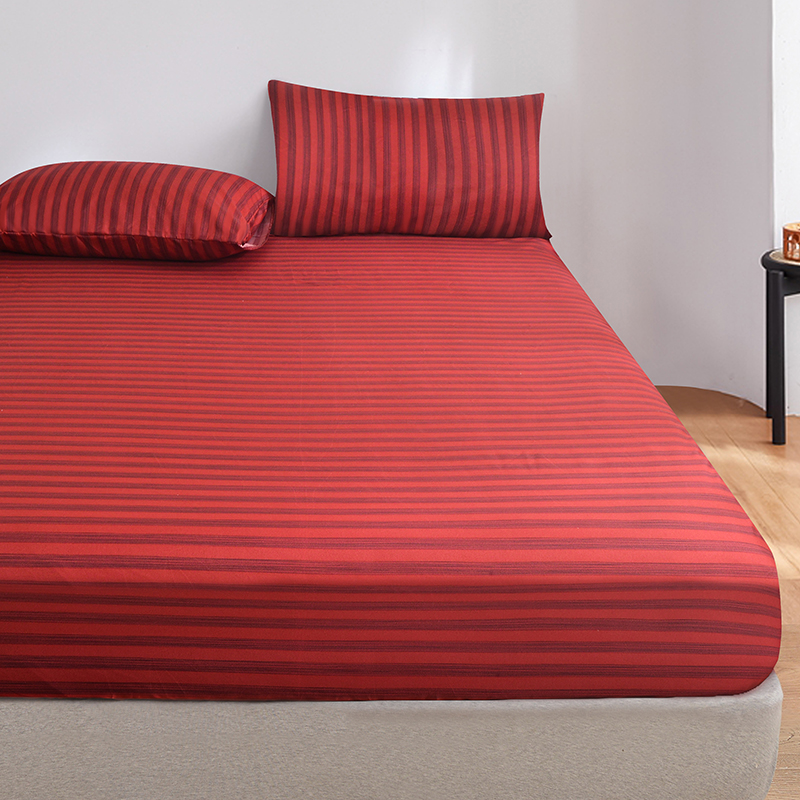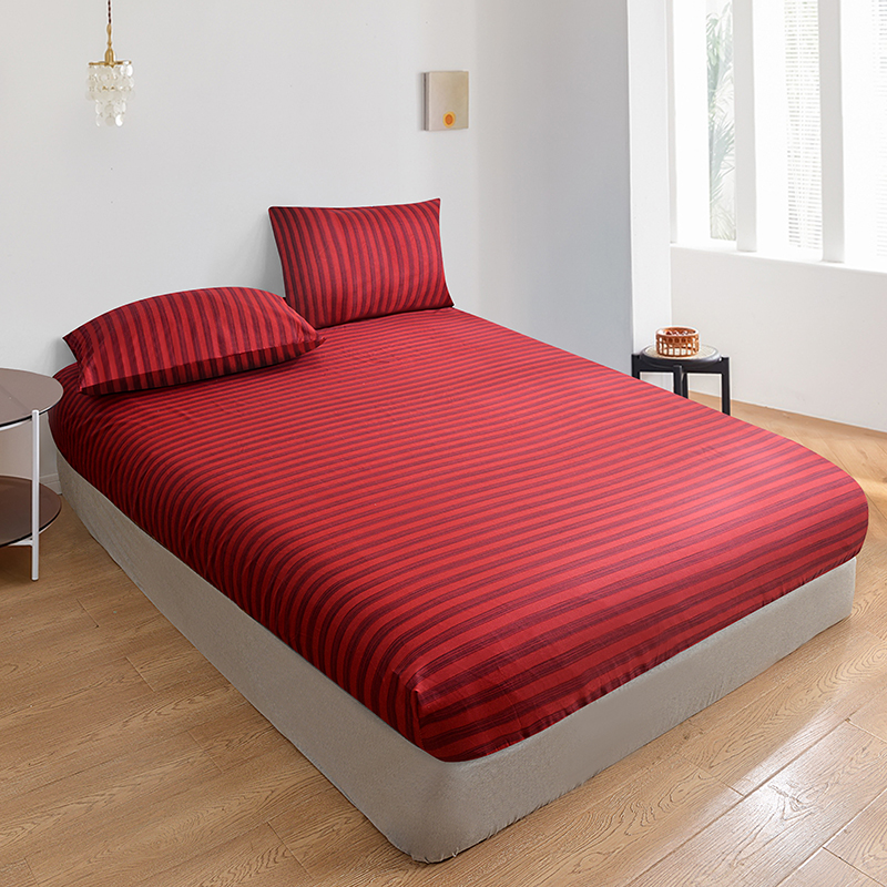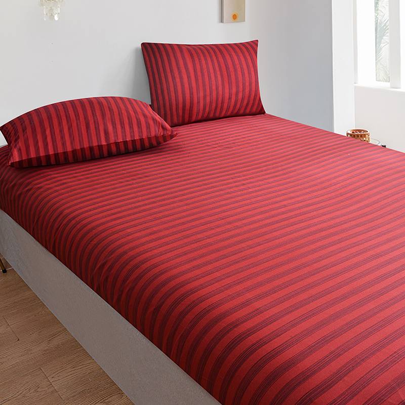 商品名称:柏钧家纺 2025新款跨境外贸日式无印风单层条纹单品床笠 红