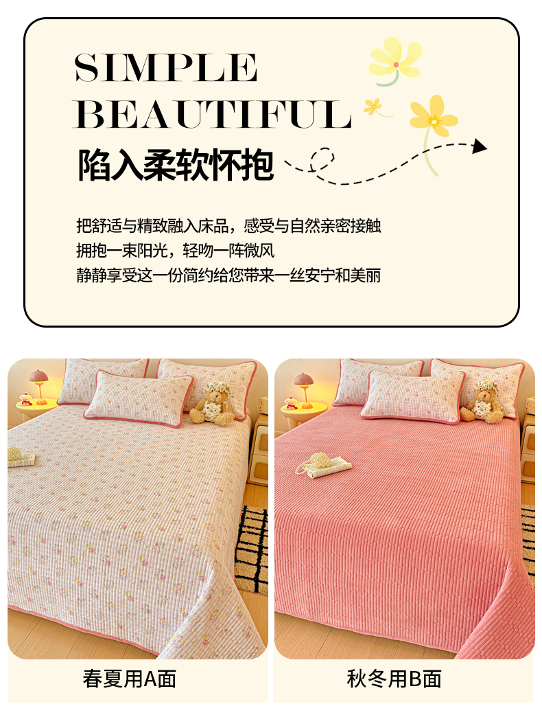• 91家纺网 家纺一手货源 找家纺 恒尚居 2025新款双层纱牛奶绒床盖双面两用夹棉床单床垫-秋冬款 四季通用 美好时光【A双层纱-B牛奶绒】