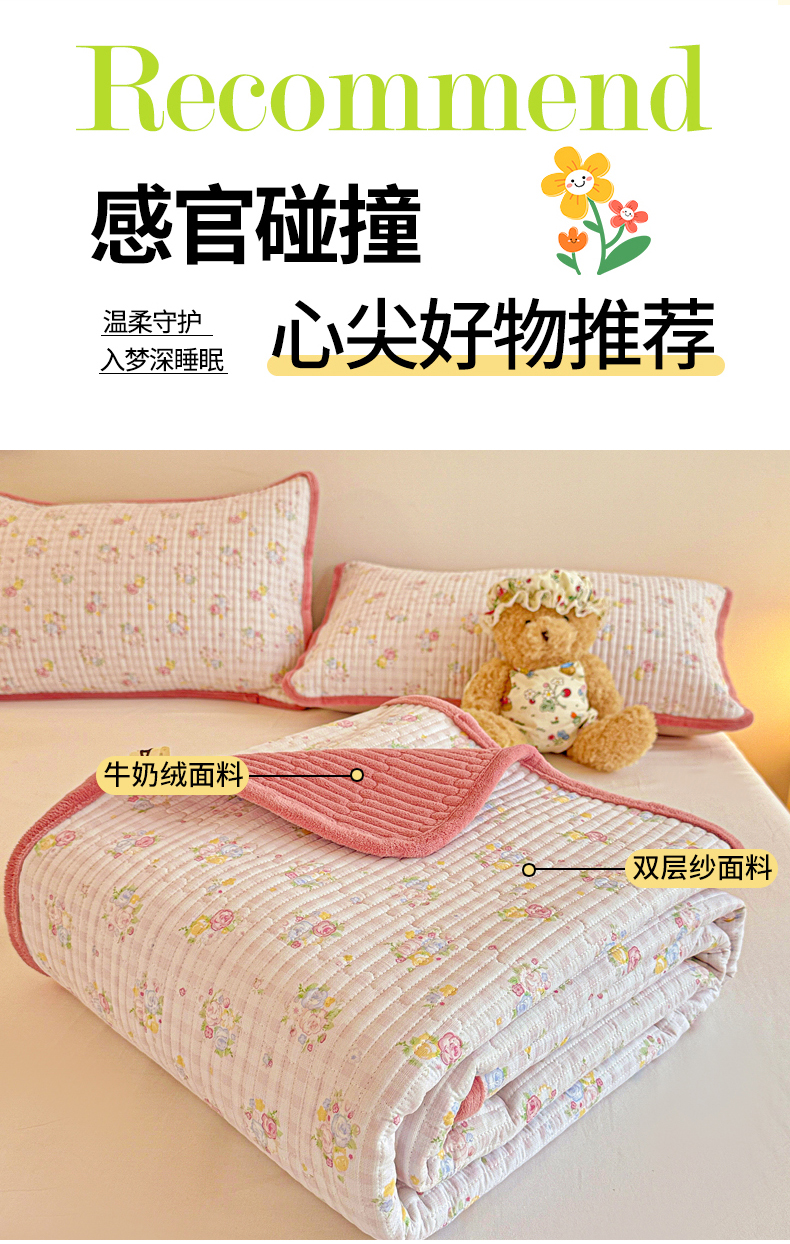 当前位置: 91家纺网 > 商品网购 > 床上用品 > 床盖 > 恒尚居 2025新款双层纱牛奶绒床盖双面两用夹棉床单床垫-秋冬款 四季通用 美好时光【A双层纱-B牛奶绒】