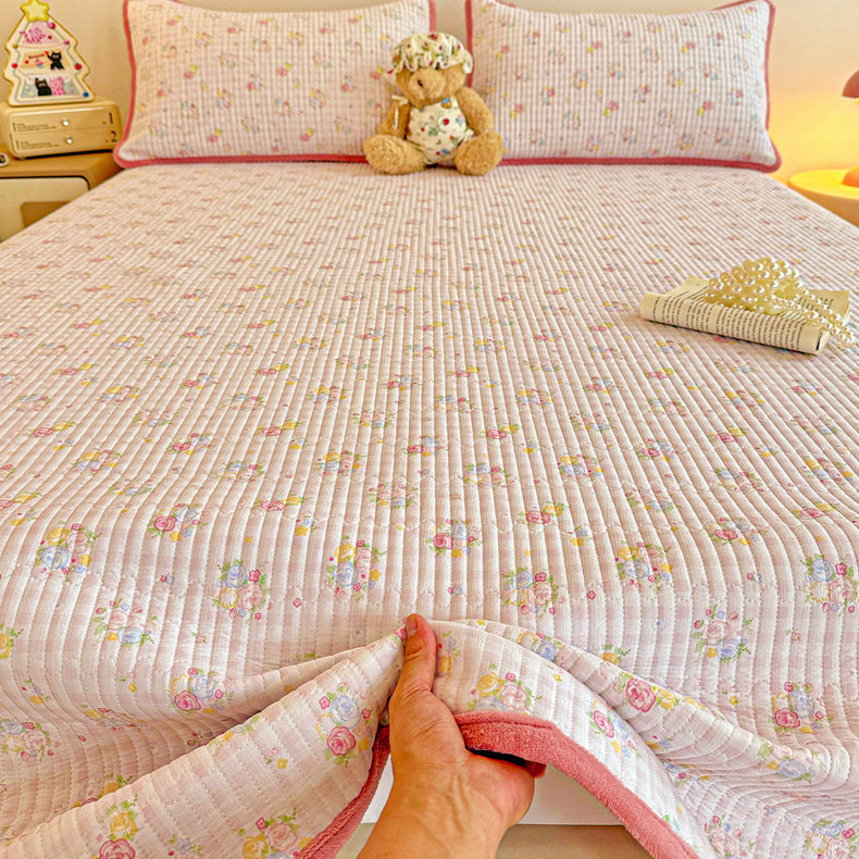 恒尚居 2025新款双层纱牛奶绒床盖双面两用夹棉床单床垫-秋冬款 四季通用 美好时光【A双层纱-B牛奶绒】