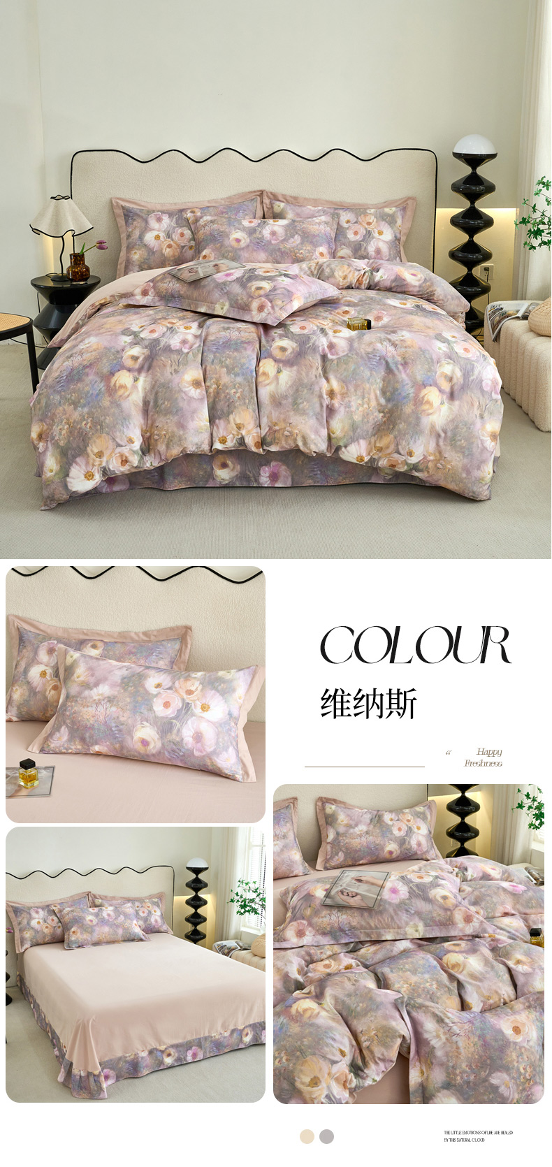 三沁家居 2025新款全棉碳素磨毛数码印花四件套 弗罗拉