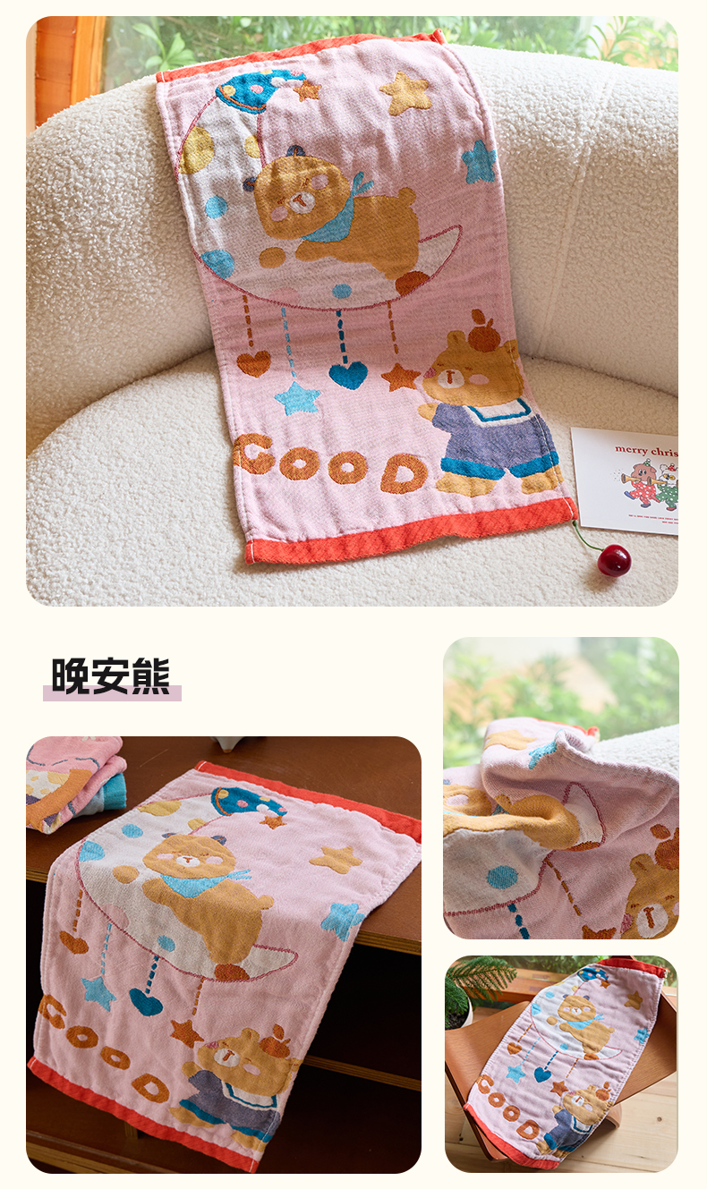 当前位置: 91家纺网 > 商品网购 > 居家日用 > 毛巾/浴巾/浴袍 > 毛巾 > 沐瑟家纺 2025新款全棉纱布儿童卡通小毛巾 平果熊 25*50cm/条