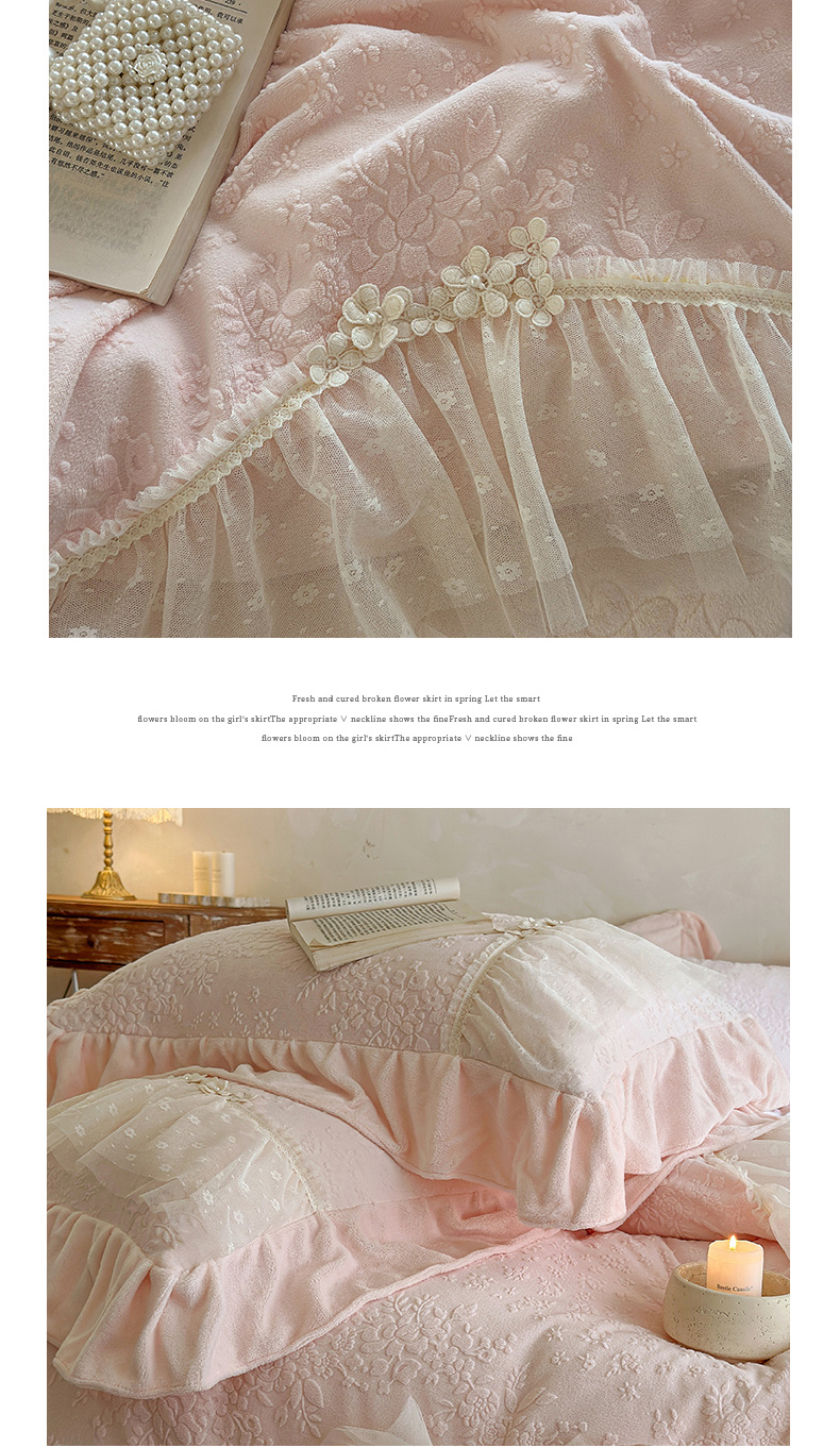 (总)乐朵家居 2025新款 南法庄园 牛奶绒 夹棉床盖四件套,粉玉,奶白