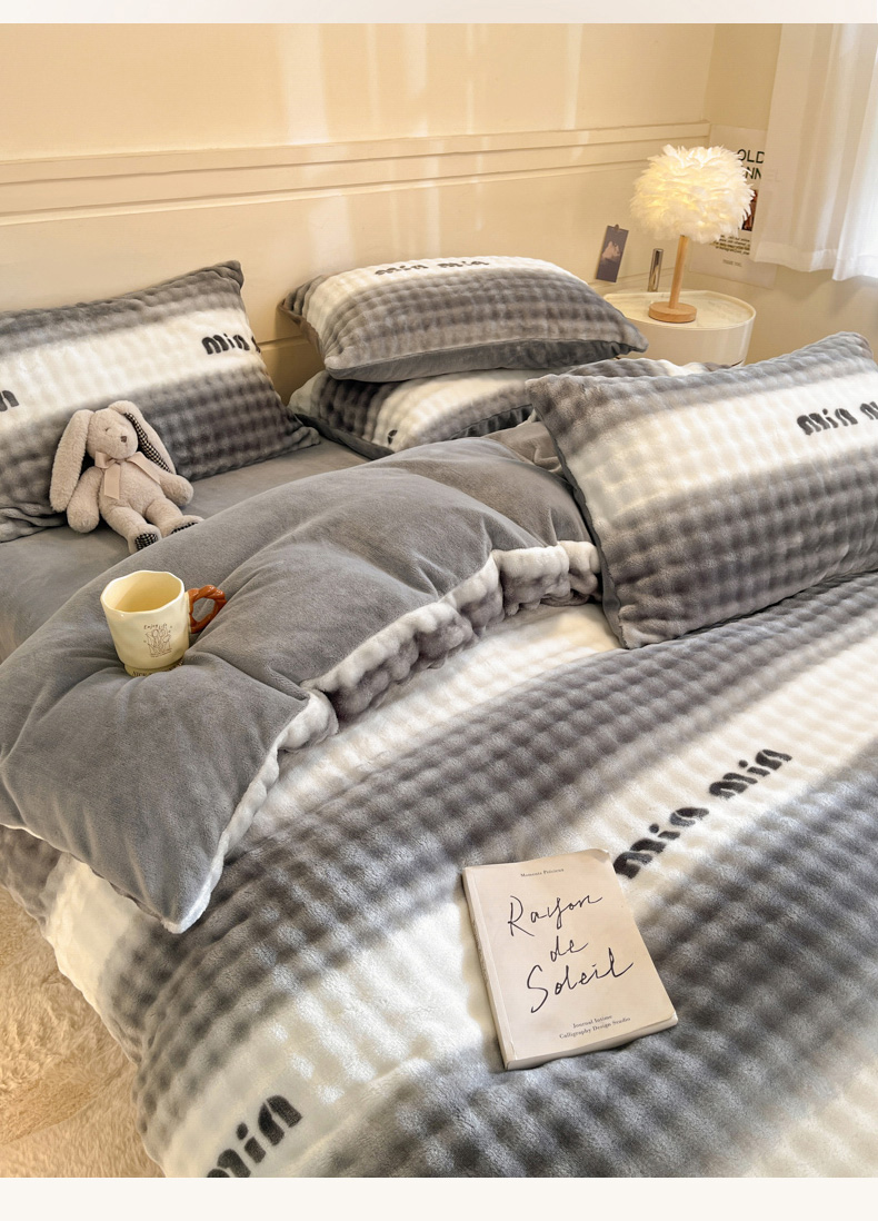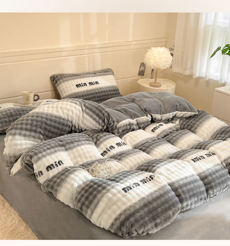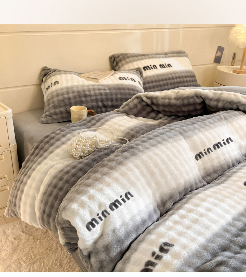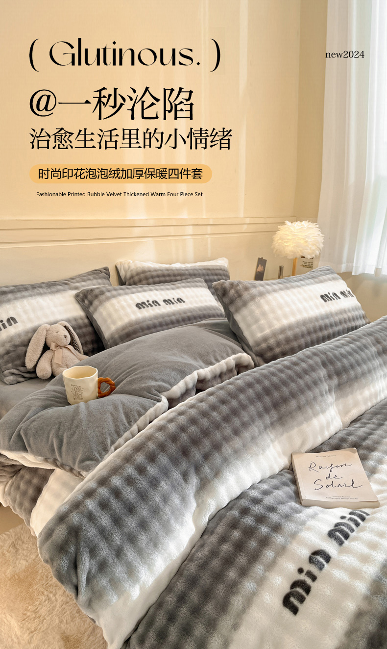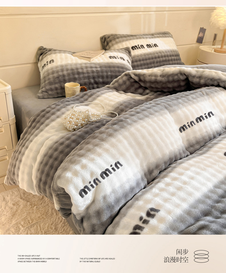 当前位置: 91家纺网 > 商品网购 > 床品套件 > 四件套 > 其它四件套 > 柒月家居 2025新款时尚印花泡泡绒加厚保暖四件套套件 泡泡-灰色空间