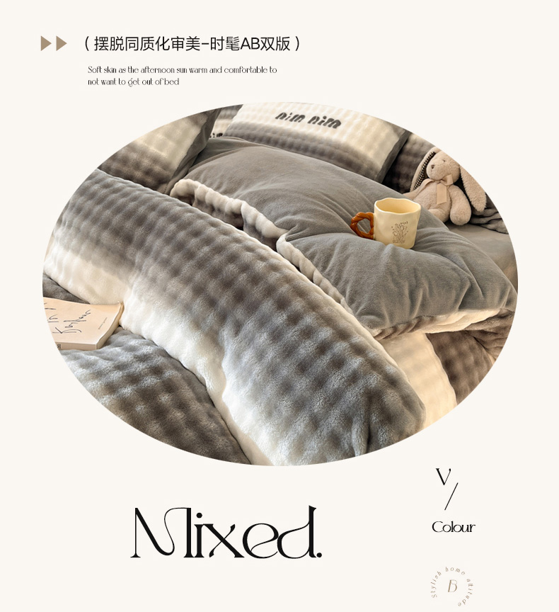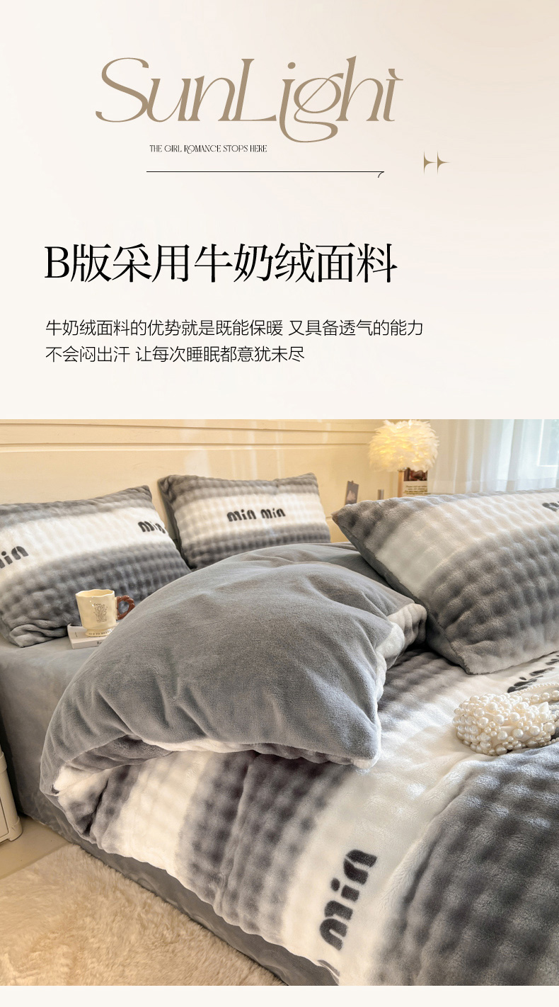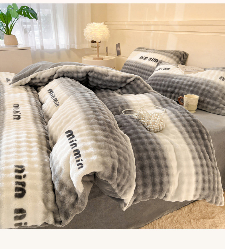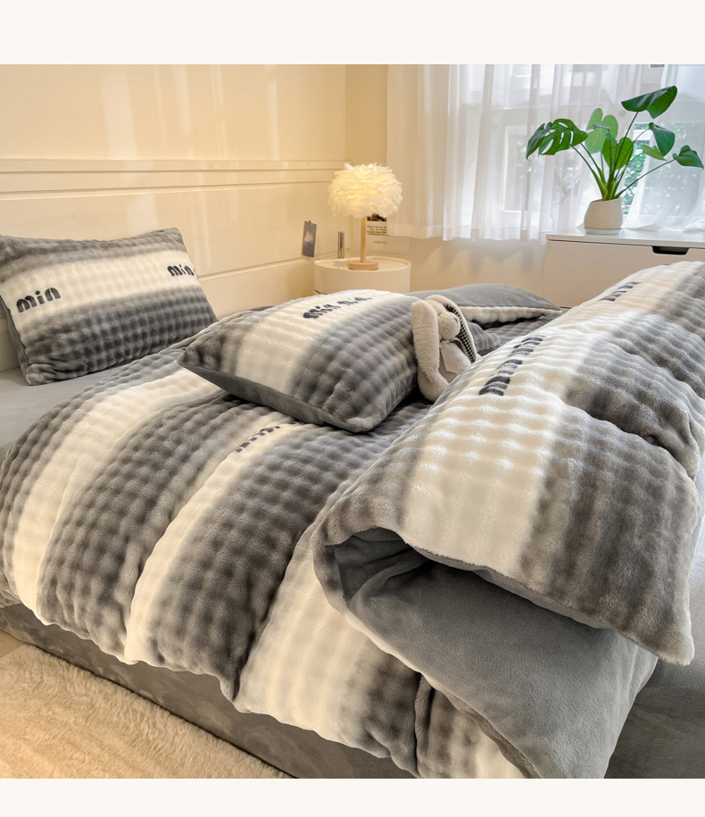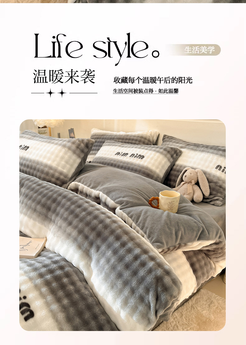当前位置: 91家纺网 > 商品网购 > 床品套件 > 四件套 > 其它四件套 > 柒月家居 2025新款时尚印花泡泡绒加厚保暖四件套套件 泡泡-灰色空间