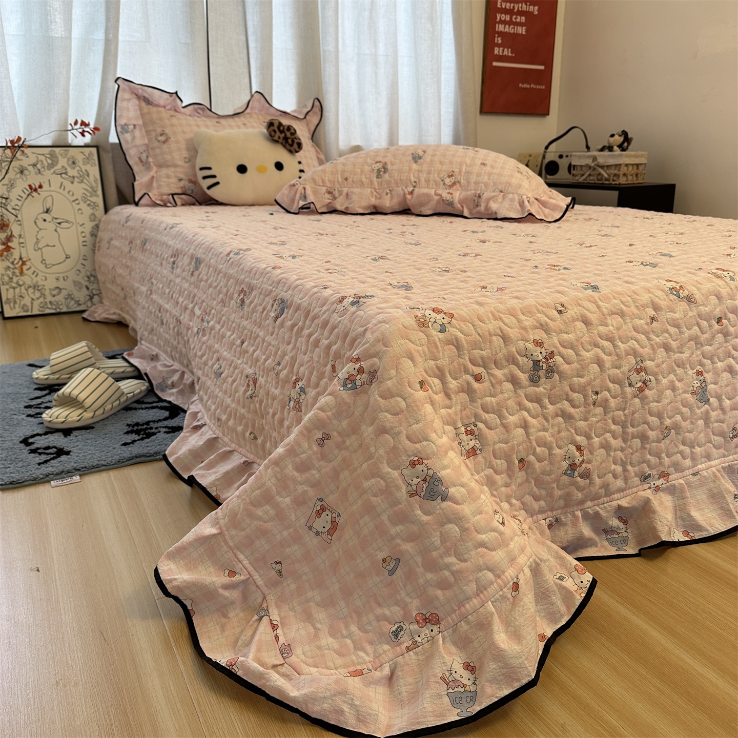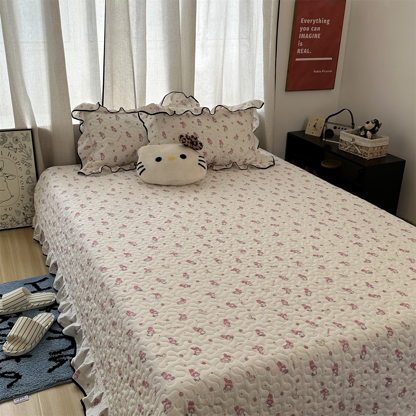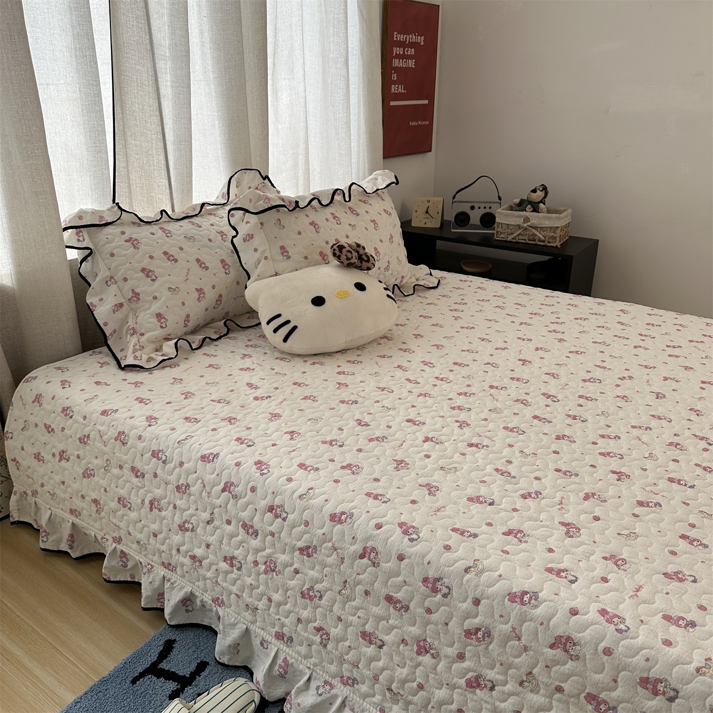 (总)优色良品家纺 2025新款三丽鸥正版授权花边款卡通加棉床盖三件套