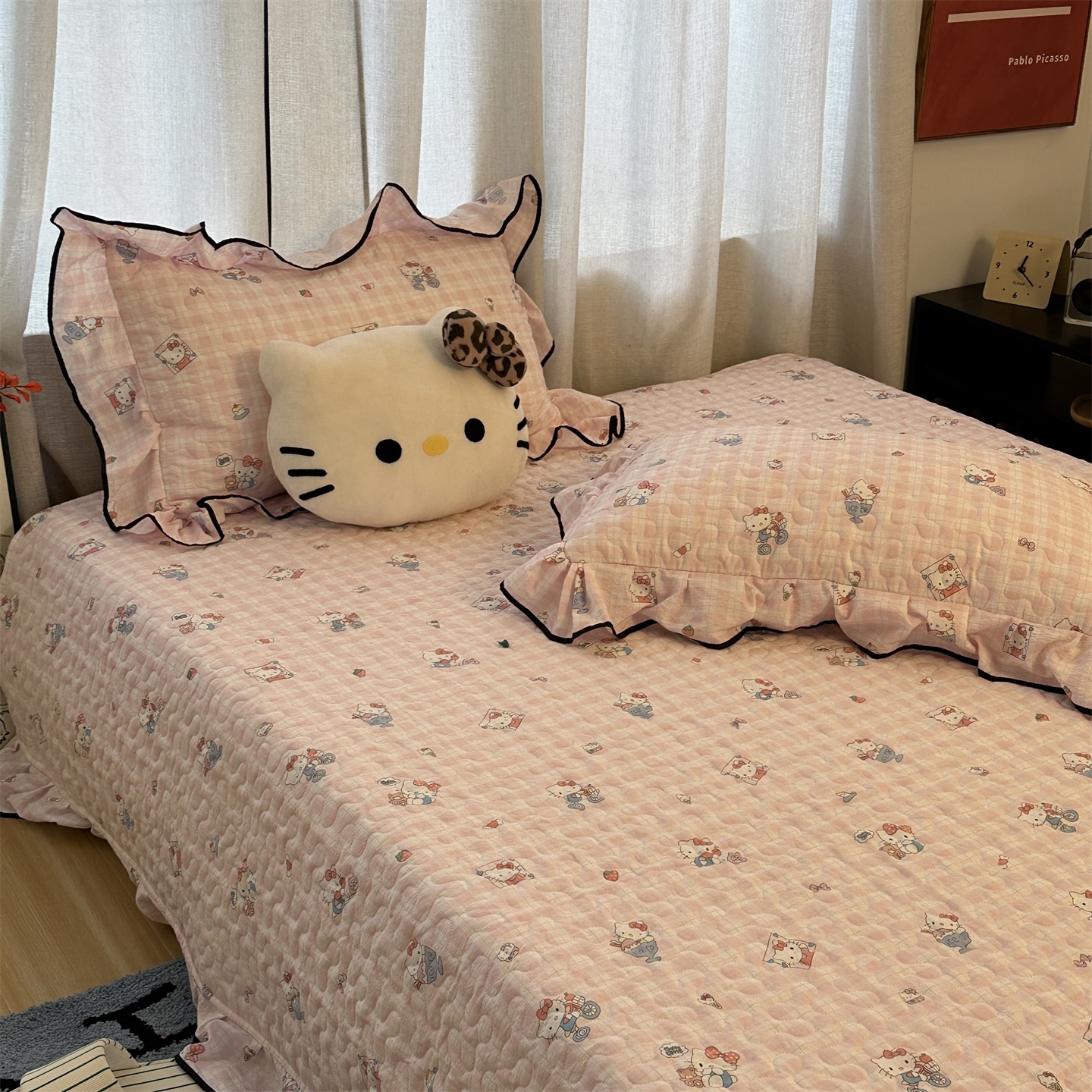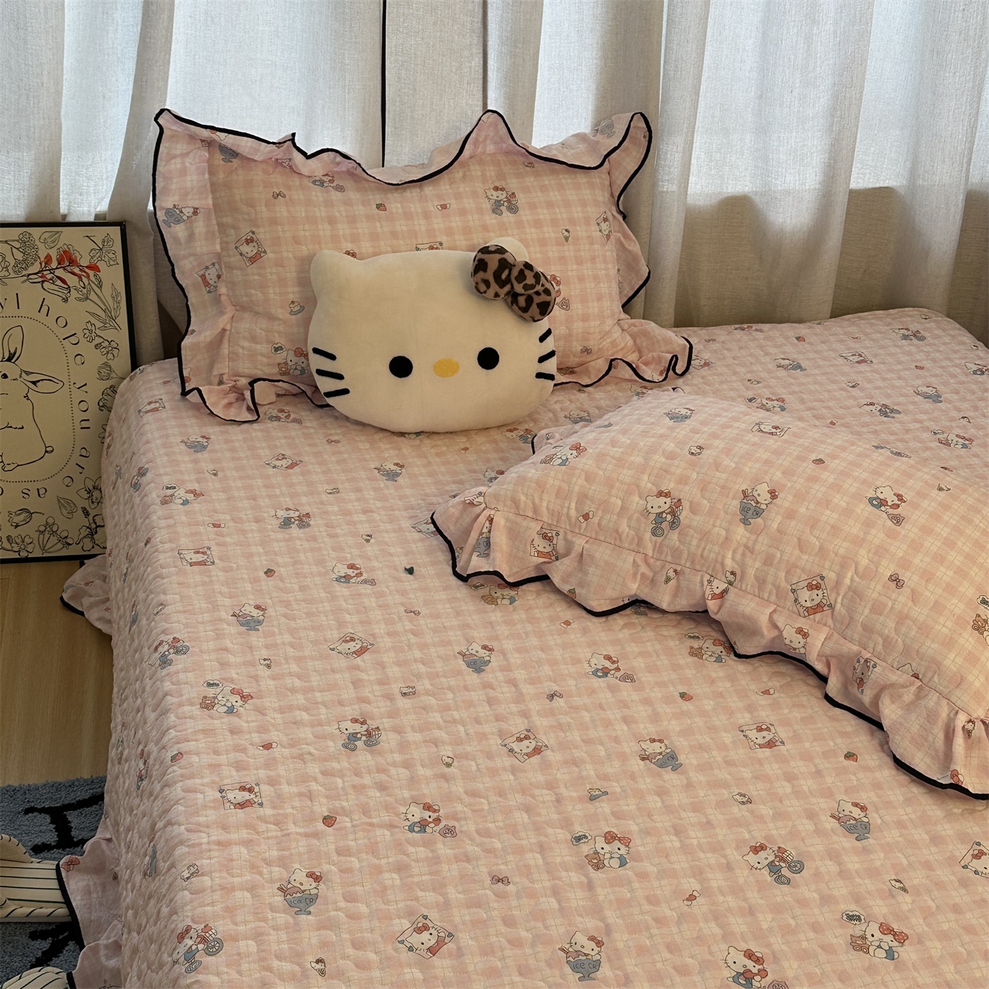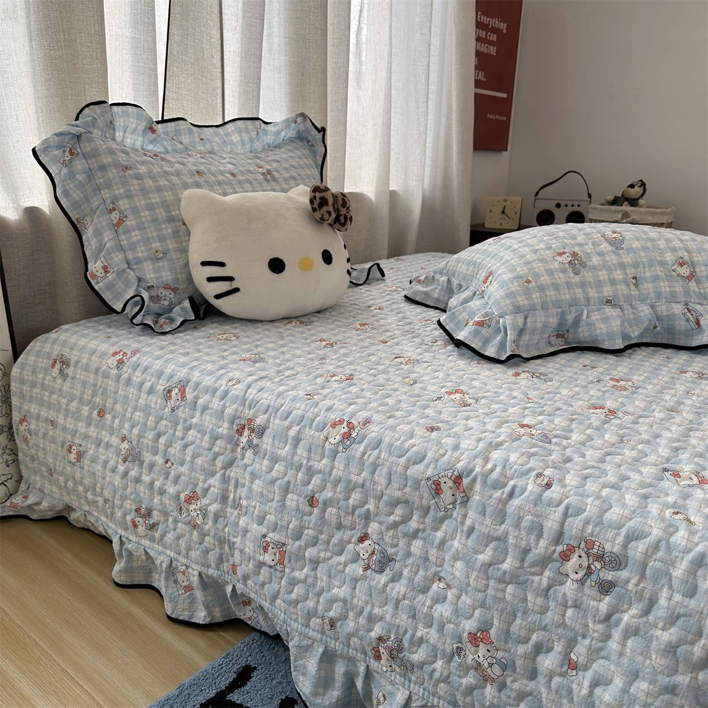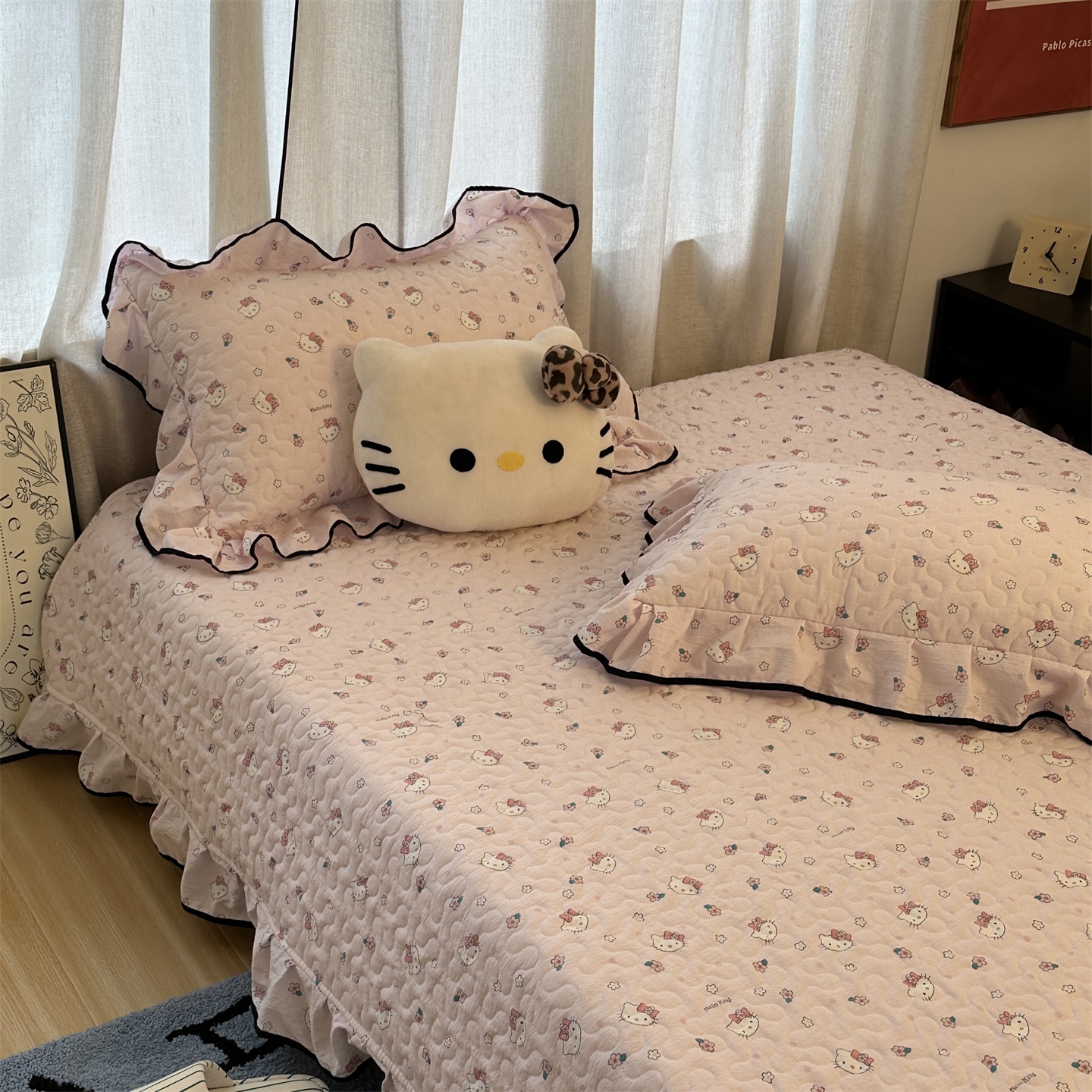 (总)优色良品家纺 2025新款三丽鸥正版授权花边款卡通加棉床盖三件套