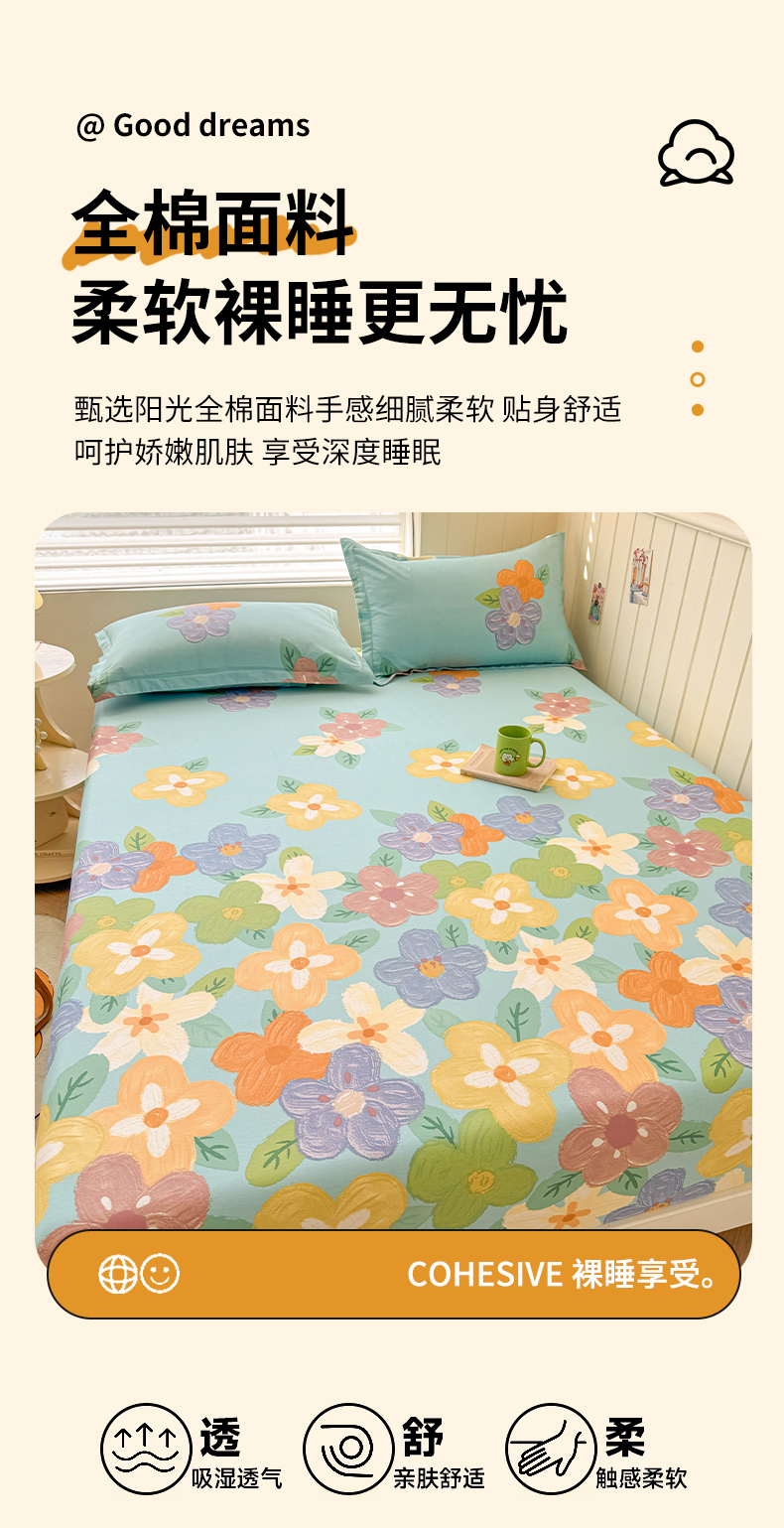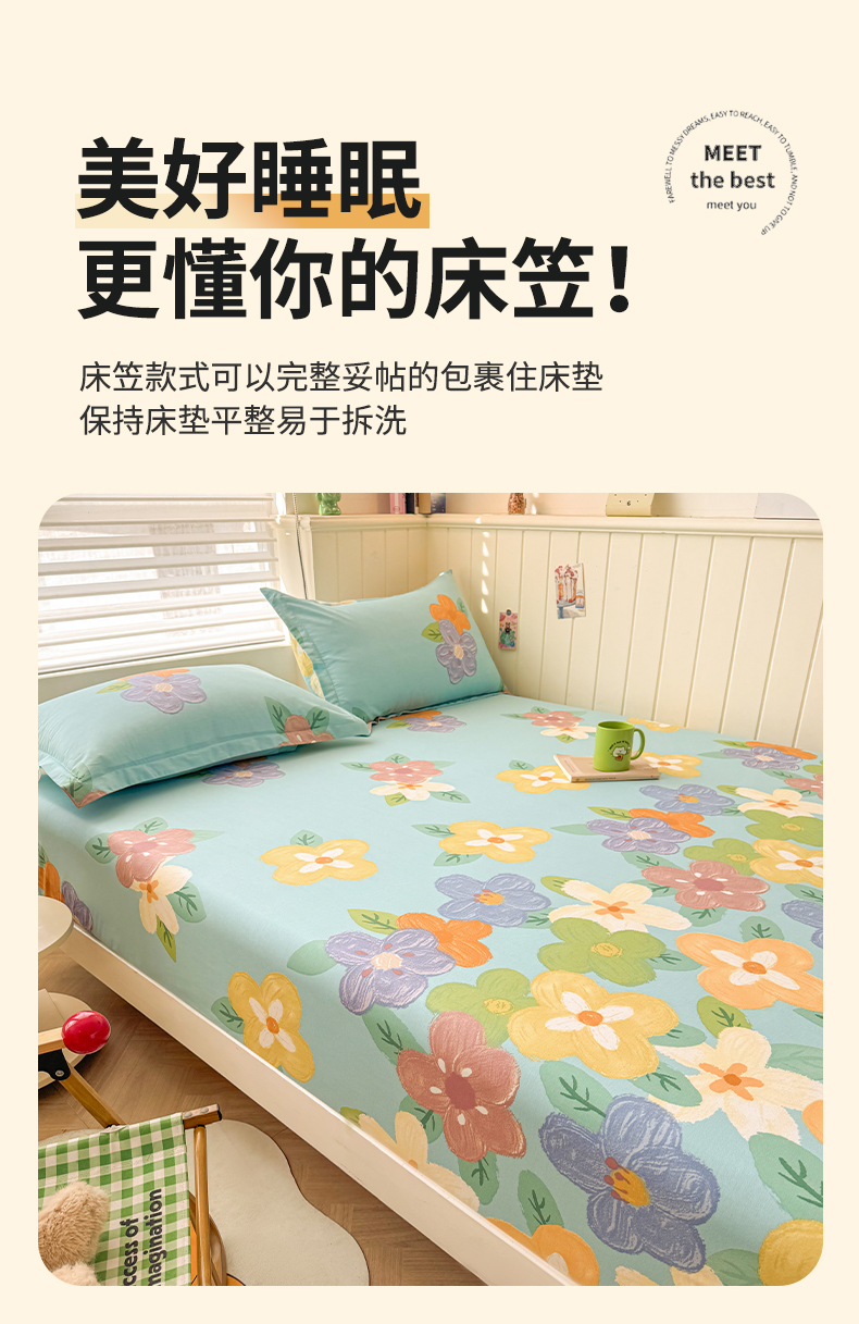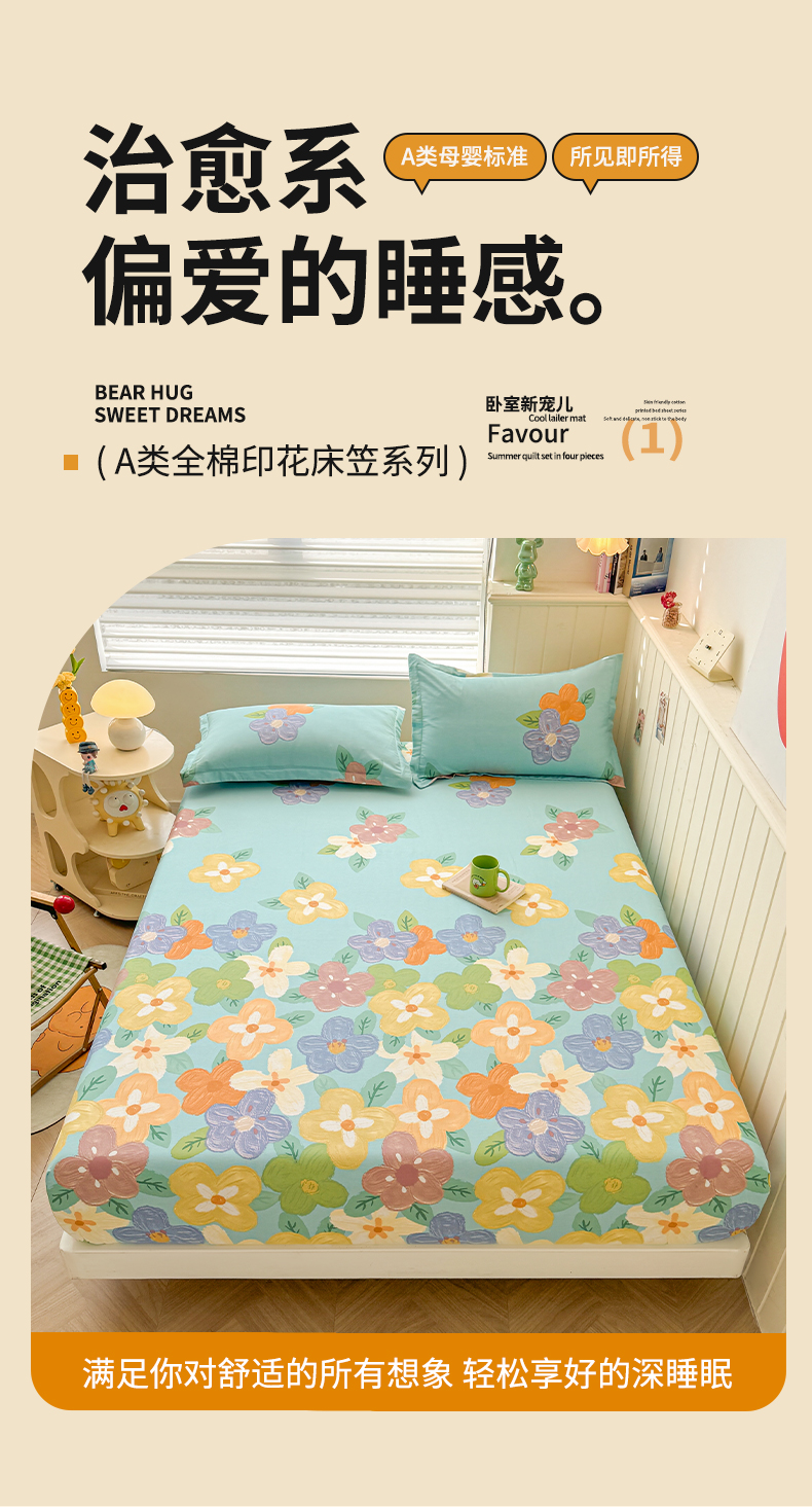 • 91家纺网 家纺一手货源 找家纺 名优家纺 2025新款全棉纯棉12868韩版小清新系列床笠单件--单床笠 氧气格调