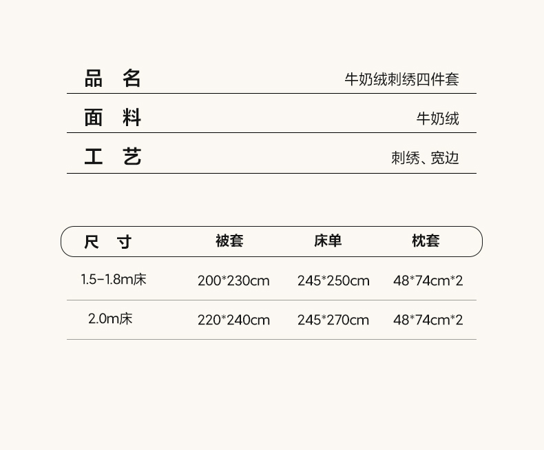 (总)帝王家纺 2025新款冬季刺绣加厚保暖烫金牛奶绒四件套珊瑚绒轻奢高级感,灰色,柔粉,青蓝,香槟,米白