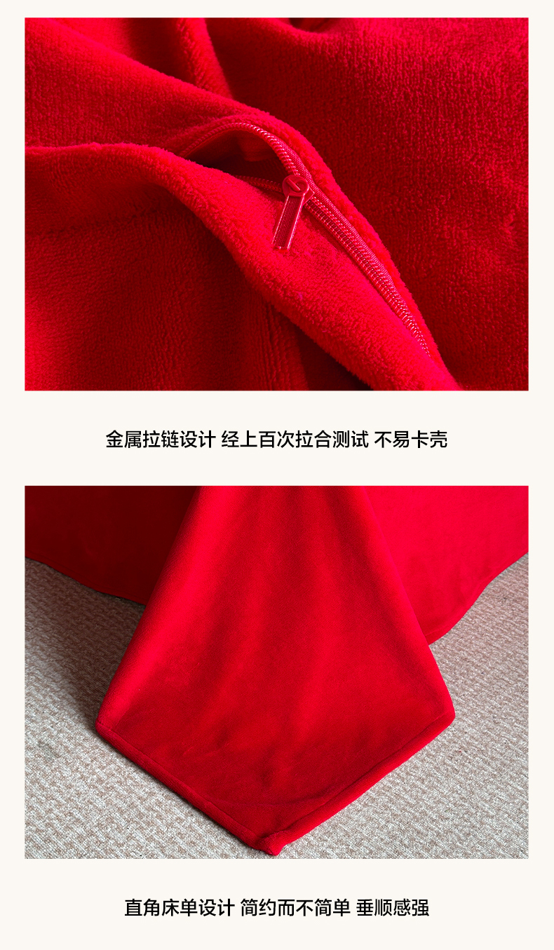 (总)帝王家纺 2025新款加厚保暖牛奶绒婚庆刺绣四件套珊瑚绒红色结婚床品,囍嫁