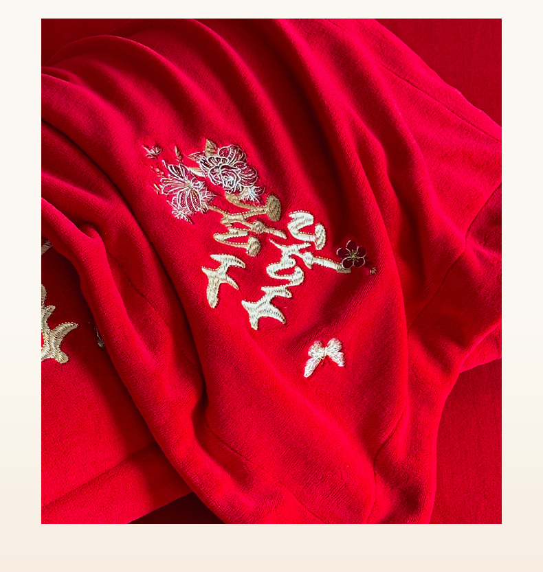 商品名称:(总)帝王家纺 2025新款加厚保暖牛奶绒婚庆刺绣四件套珊瑚绒红色结婚床品-蝶舞喜事