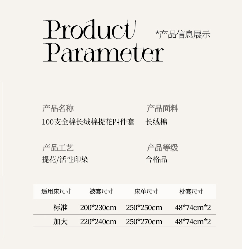 商品名称:优姿家纺 2026新款全棉100支长绒棉提花四件套 星空香槟