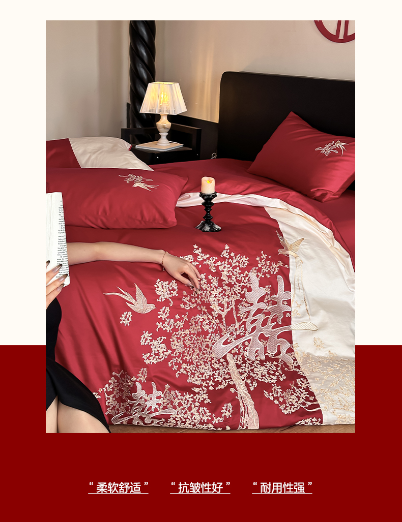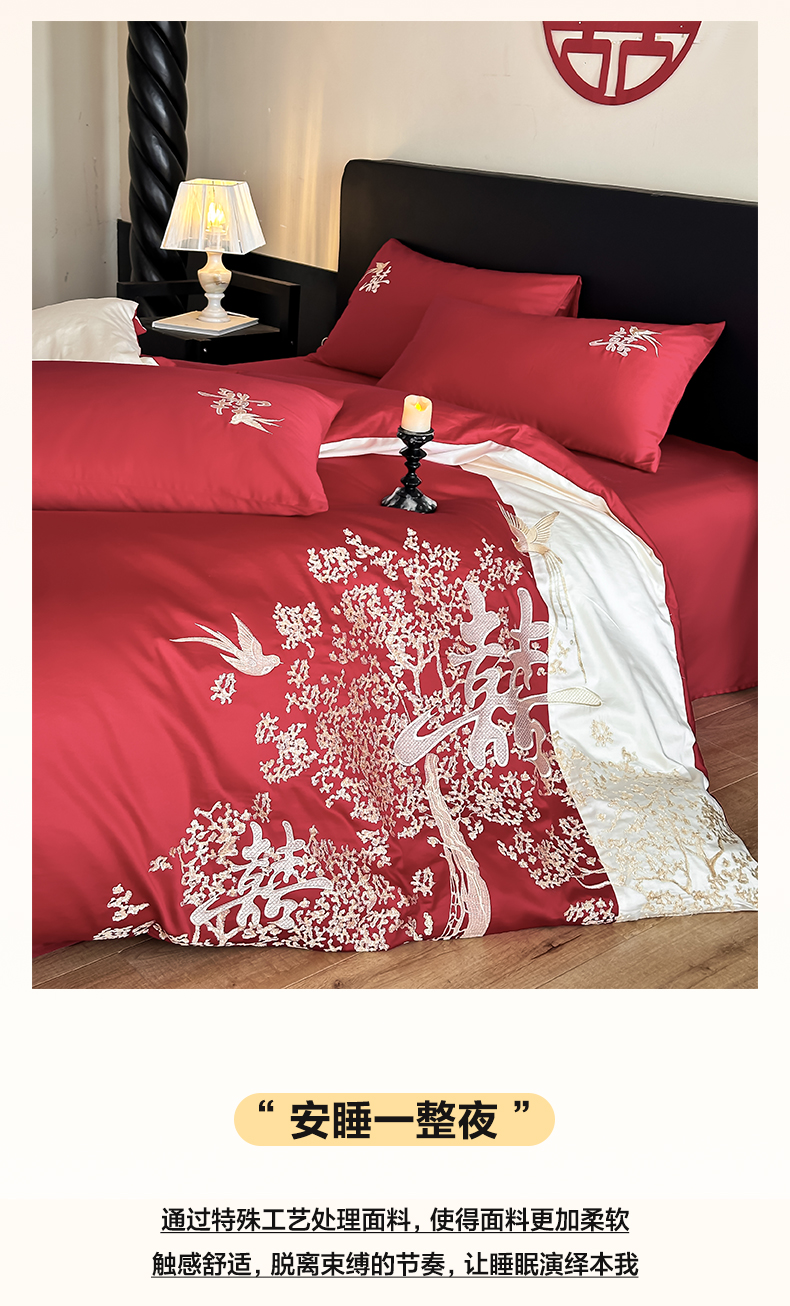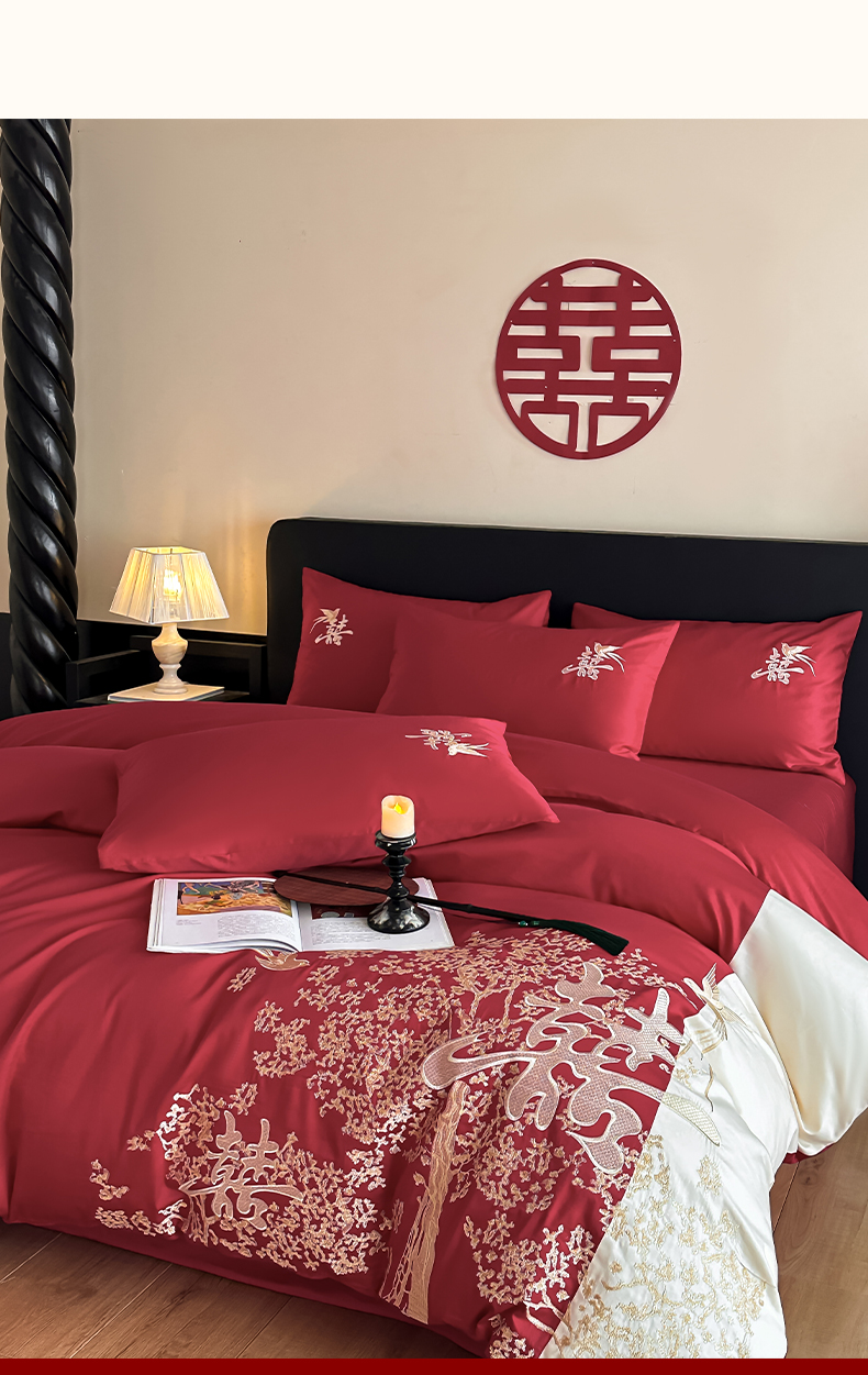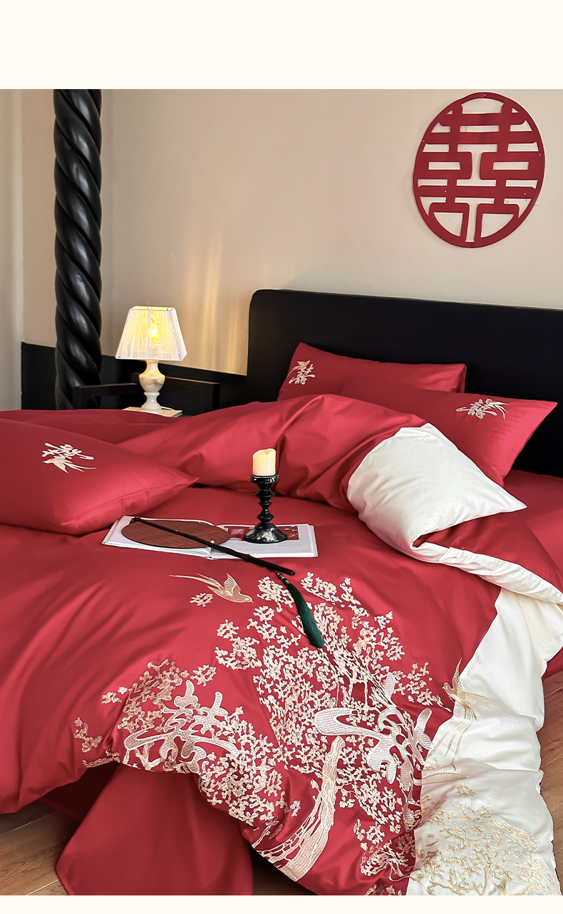 当前位置: 91家纺网 > 商品网购 > 床品套件 > 四件套 > 婚庆四件套 > (总)帝王家纺 2025新款亲肤棉磨毛全棉纯棉刺绣婚庆四件套红色结婚床上用品-喜上眉梢