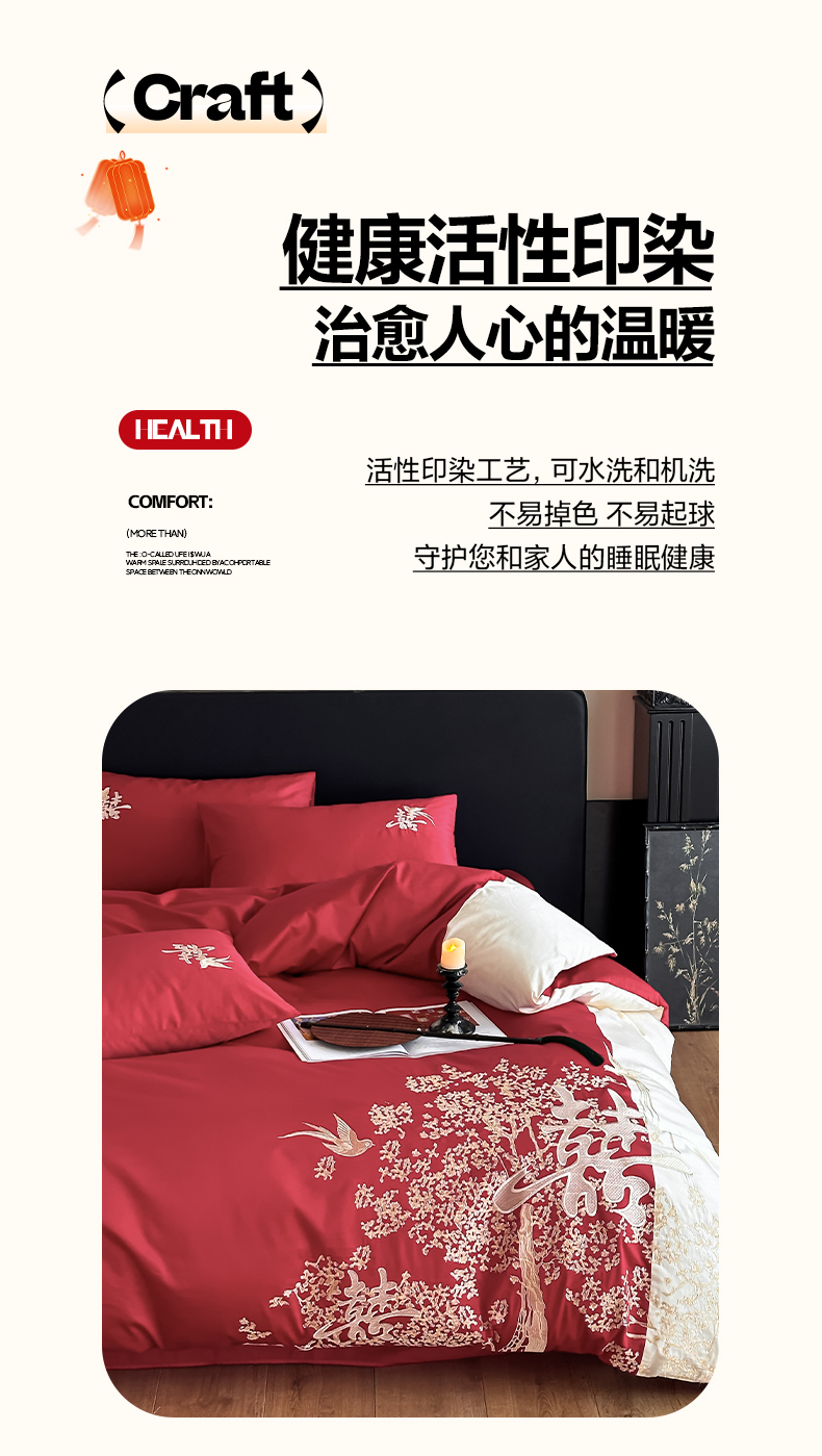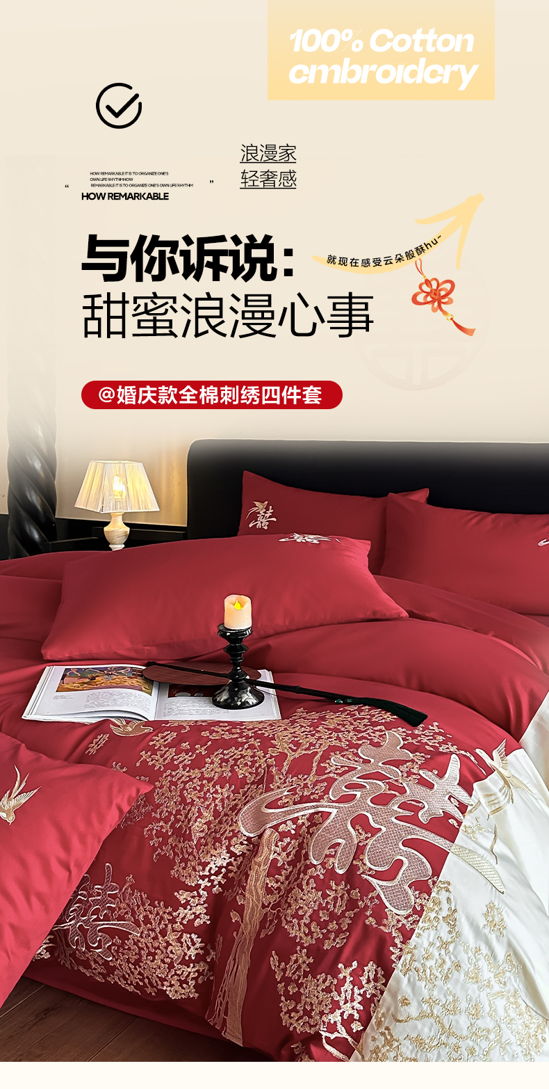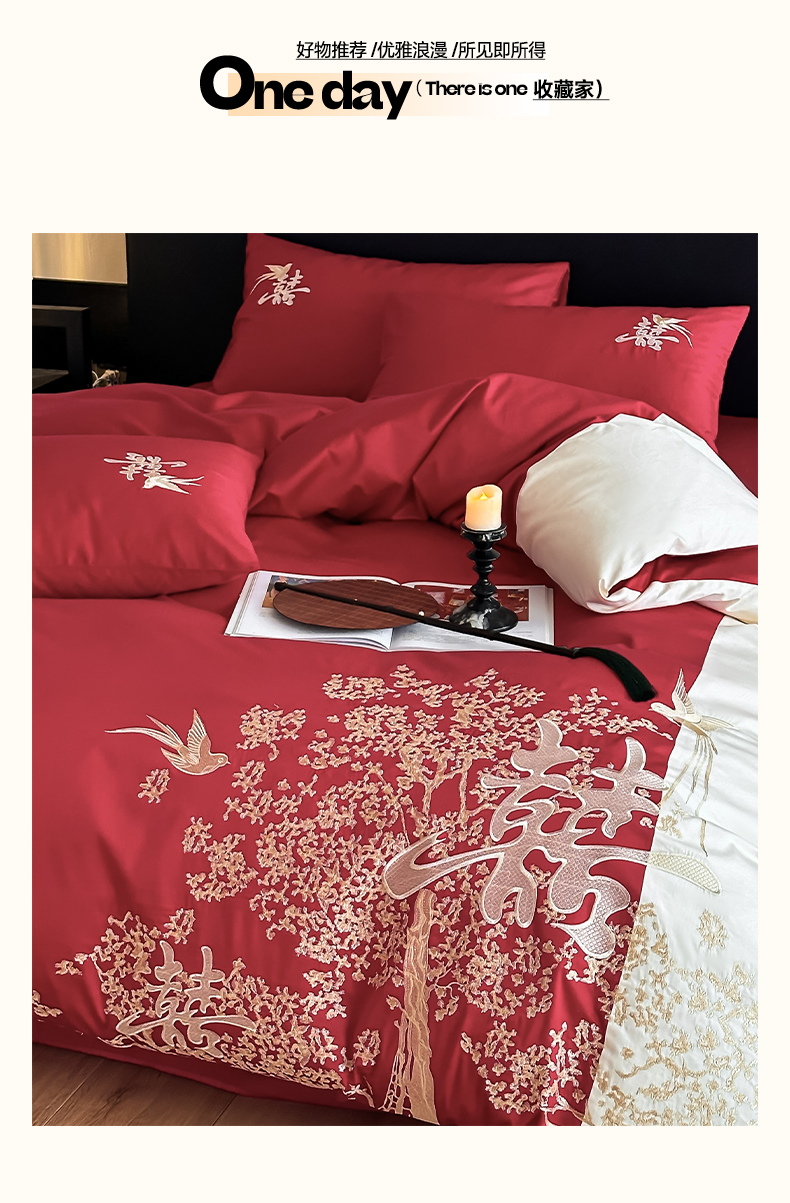 当前位置: 91家纺网 > 商品网购 > 床品套件 > 四件套 > 婚庆四件套 > (总)帝王家纺 2025新款亲肤棉磨毛全棉纯棉刺绣婚庆四件套红色结婚床上用品-喜上眉梢