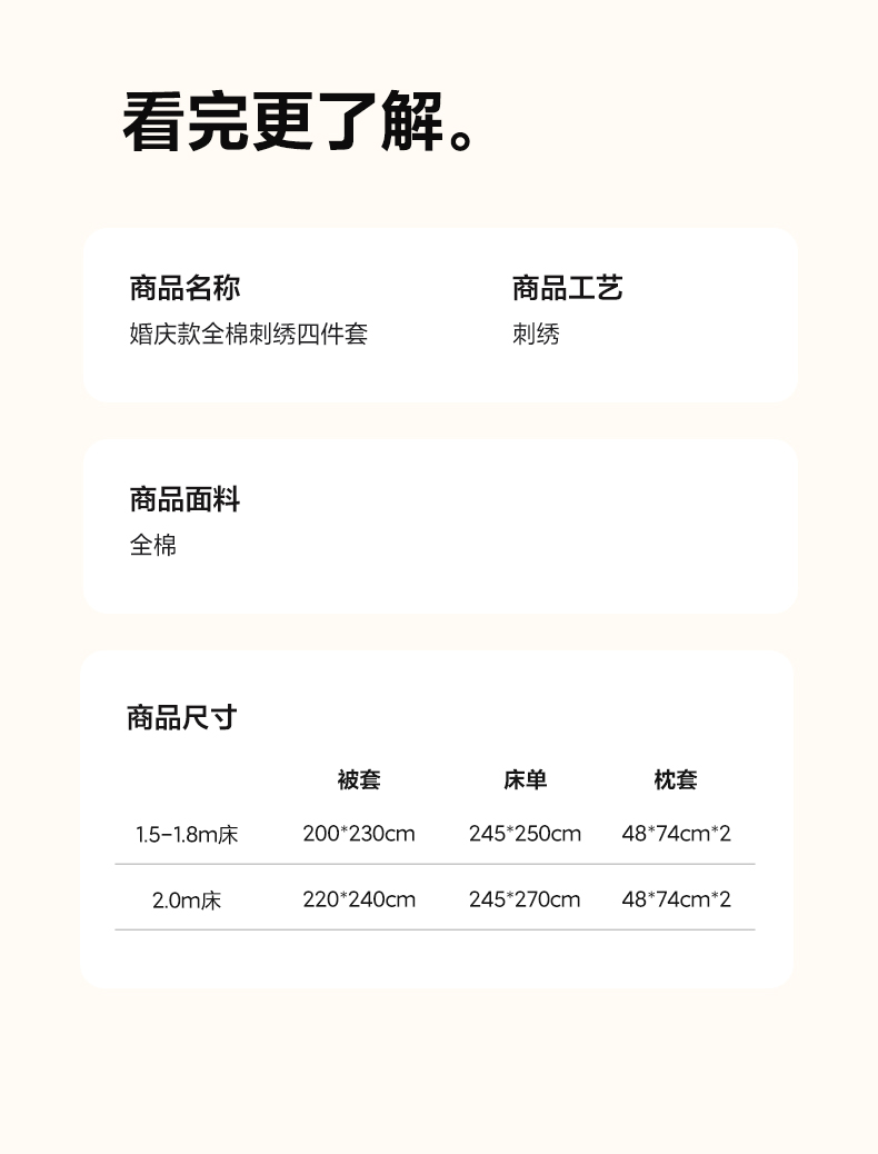 【床笠款】1.8四件套-被套220x240 | ¥150.00 |
