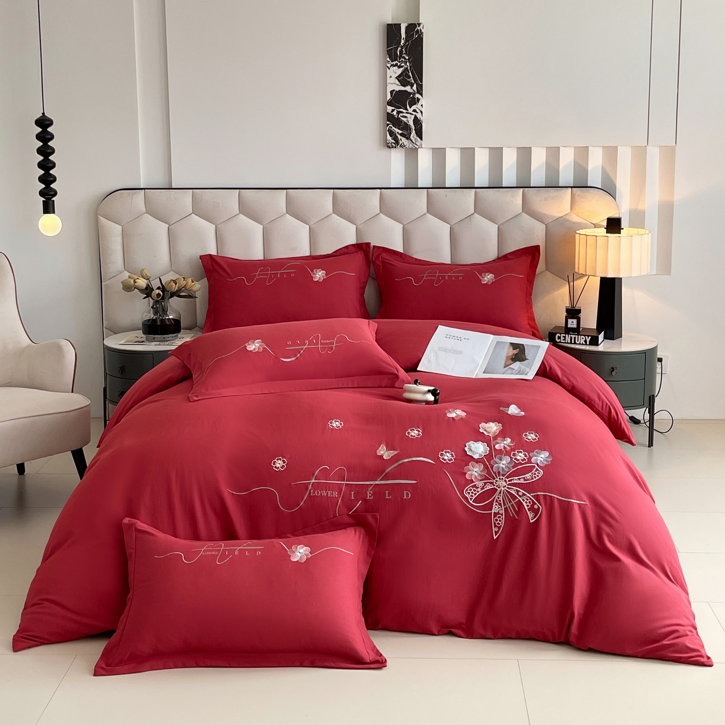 (总)大麦乐田 2025新款四季亲肤磨毛立体花刺绣工艺款四件套-花香蝶舞,花香蝶舞-香粉玉,花香蝶舞-宾利兰,花香蝶舞-梦幻紫,花香蝶舞-绅士灰,花香蝶舞-奶茶绿,花香蝶舞-大红