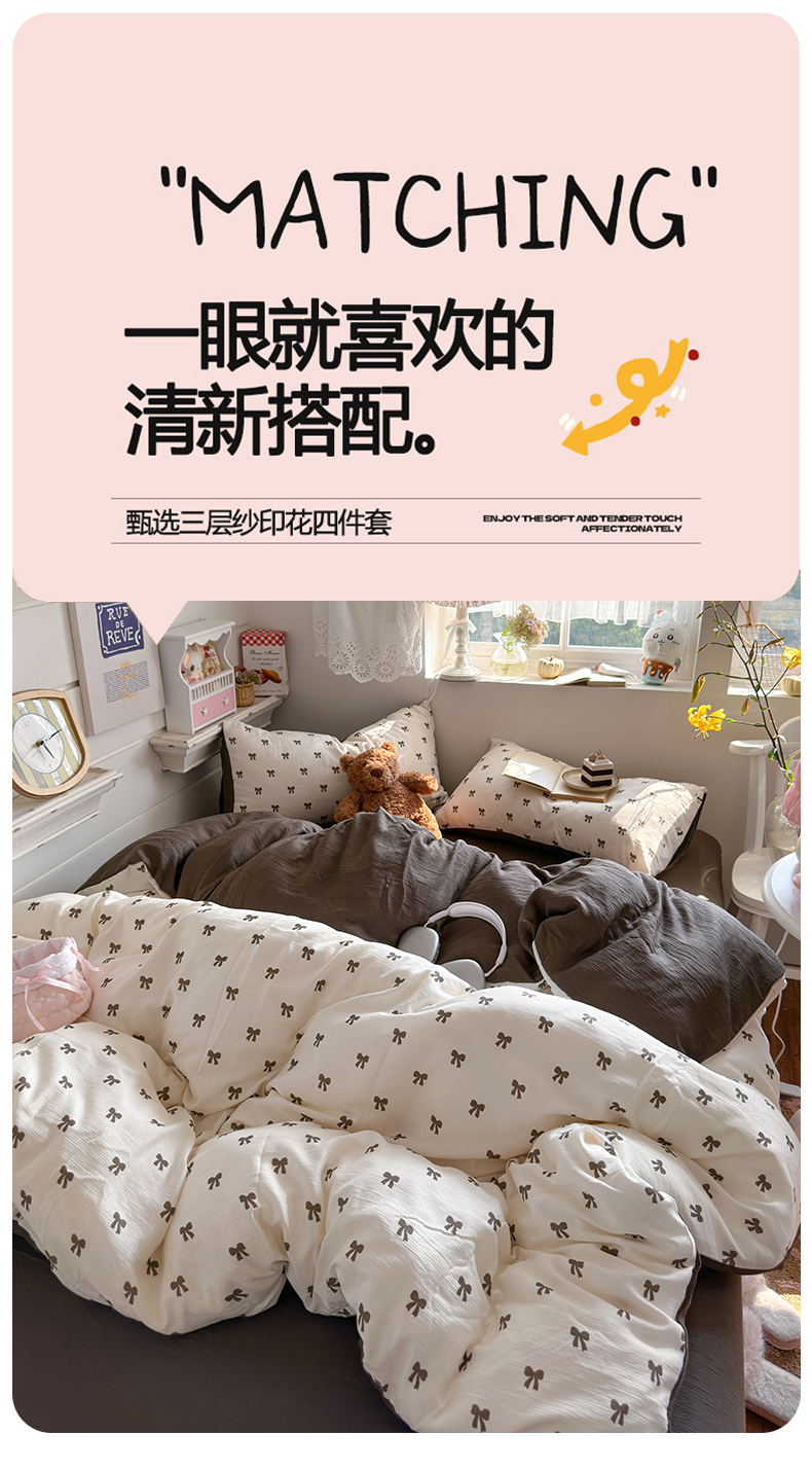 当前位置: 91家纺网 > 商品网购 > 床品套件 > 四件套 > 其它四件套 > 玉海棠家纺 2025新款甄选三层纱印花四件套 碱水结