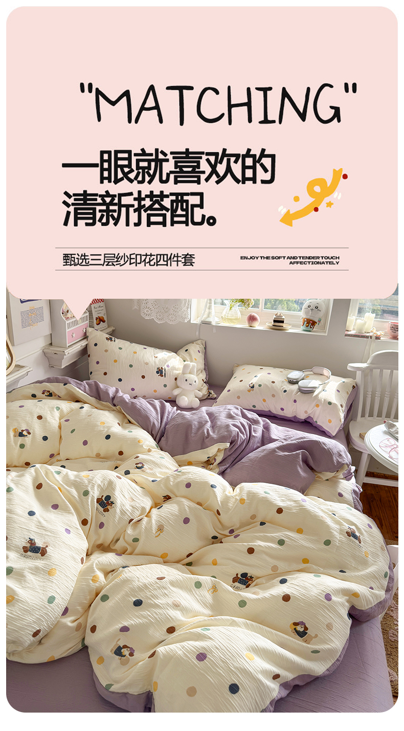 当前位置: 91家纺网 > 商品网购 > 床品套件 > 四件套 > 其它四件套 > 玉海棠家纺 2025新款甄选三层纱印花四件套 糖豆腊肠狗