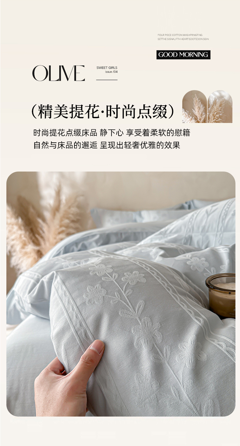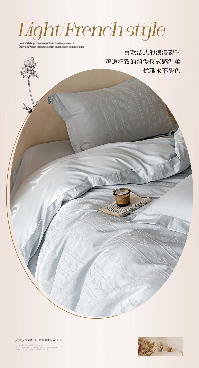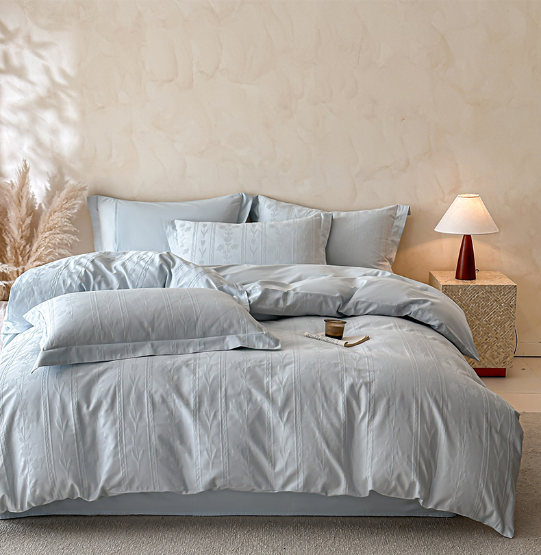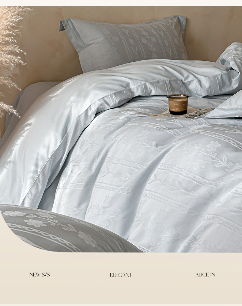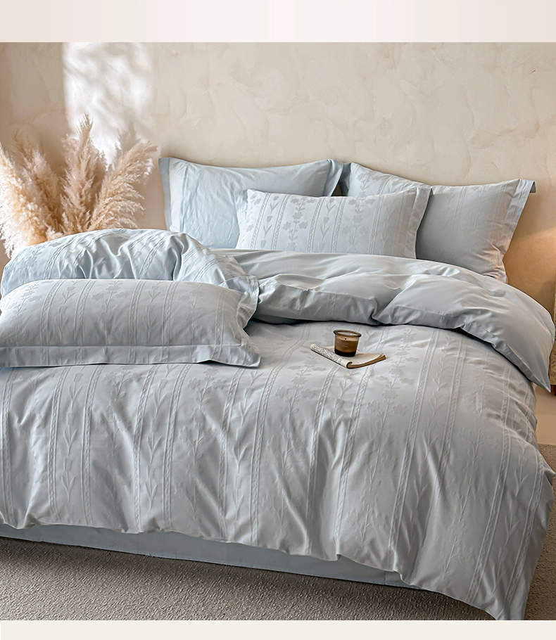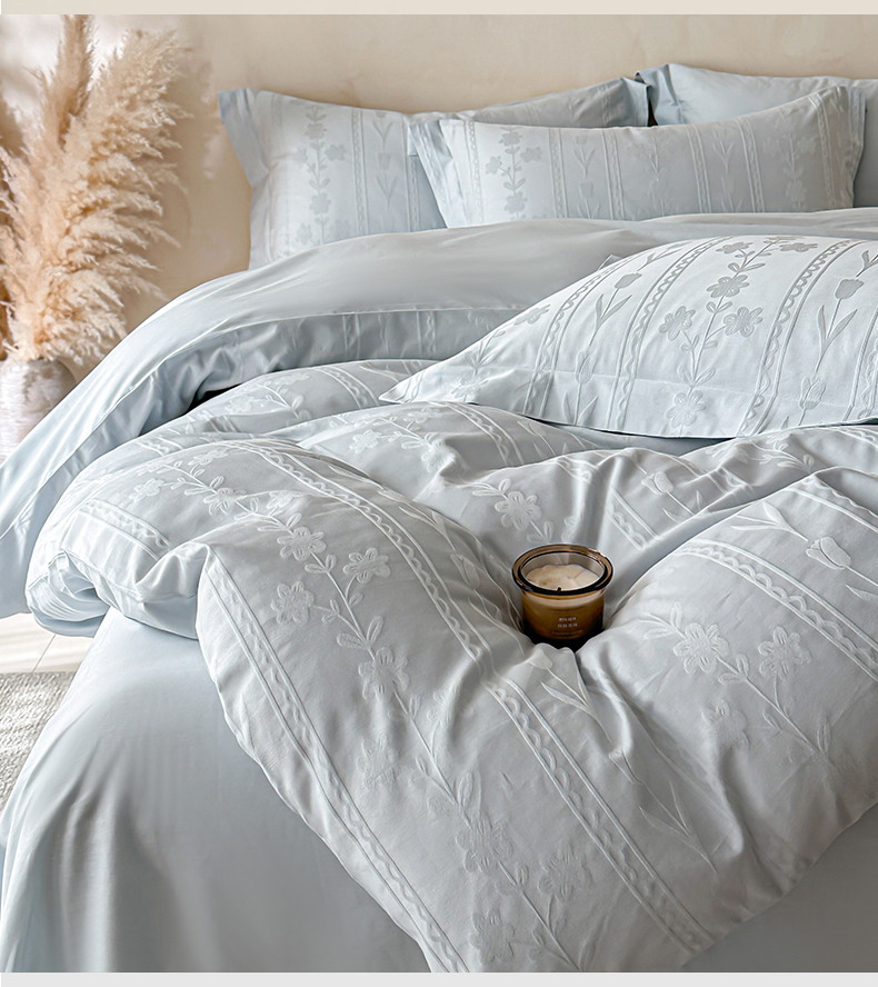 当前位置: 91家纺网 > 商品网购 > 床品套件 > 四件套 > 长绒棉四件套 > 禾时 2026新款春夏全棉长绒棉立体提花四件套-花屿 淡雅蓝
