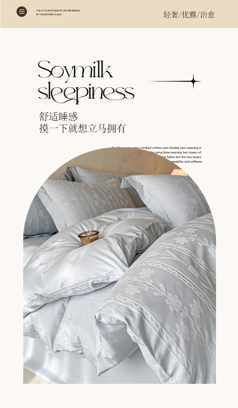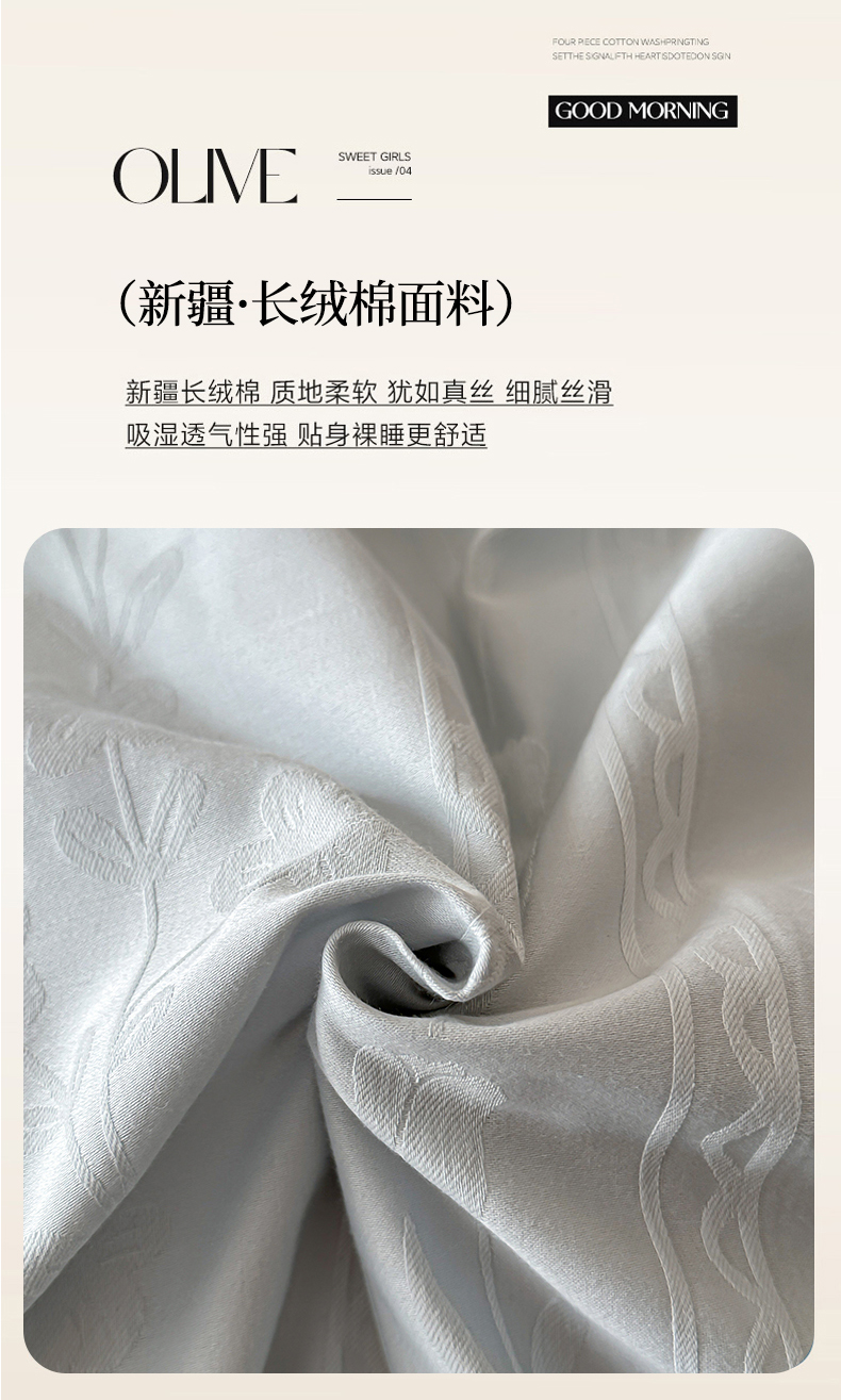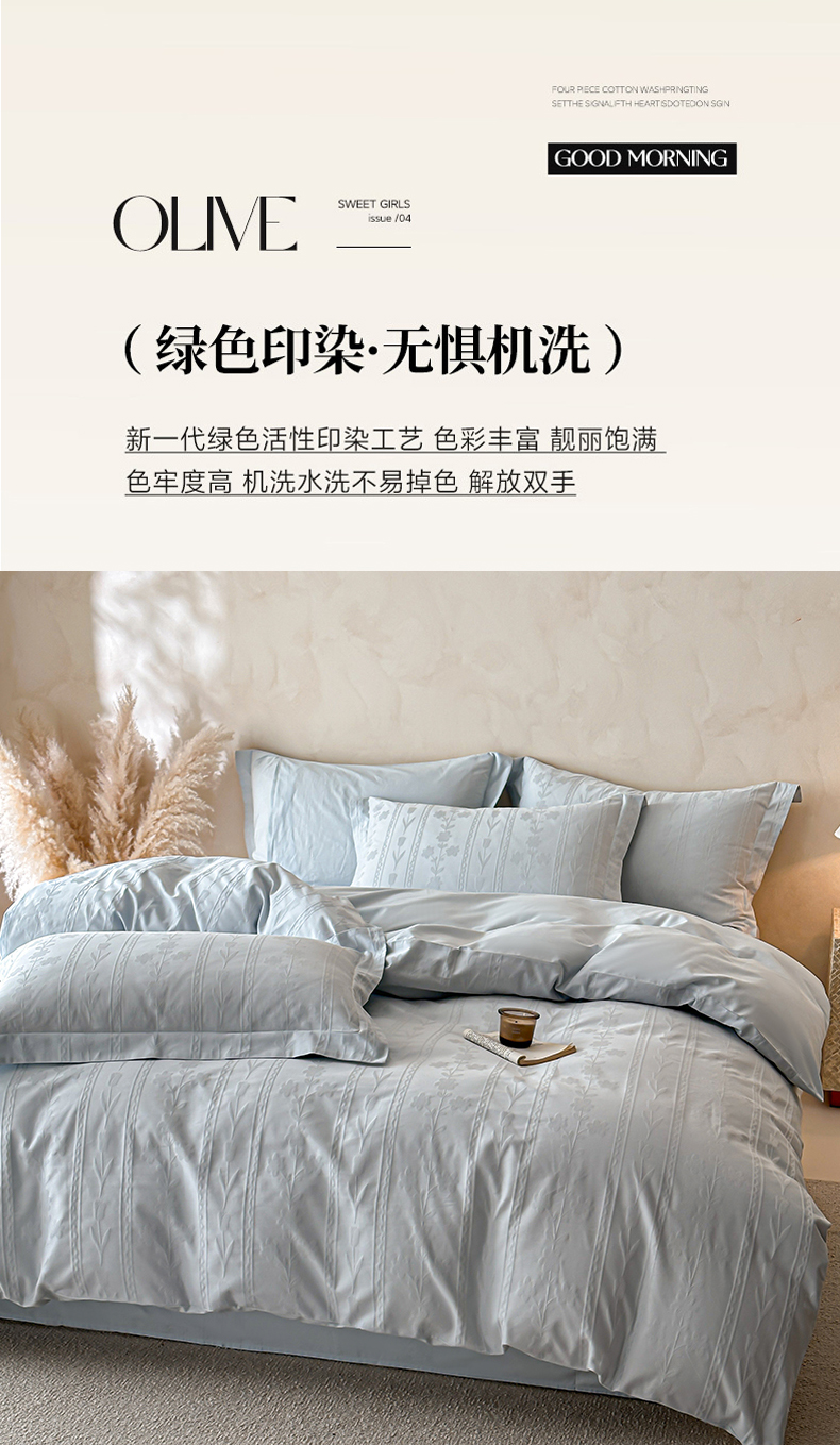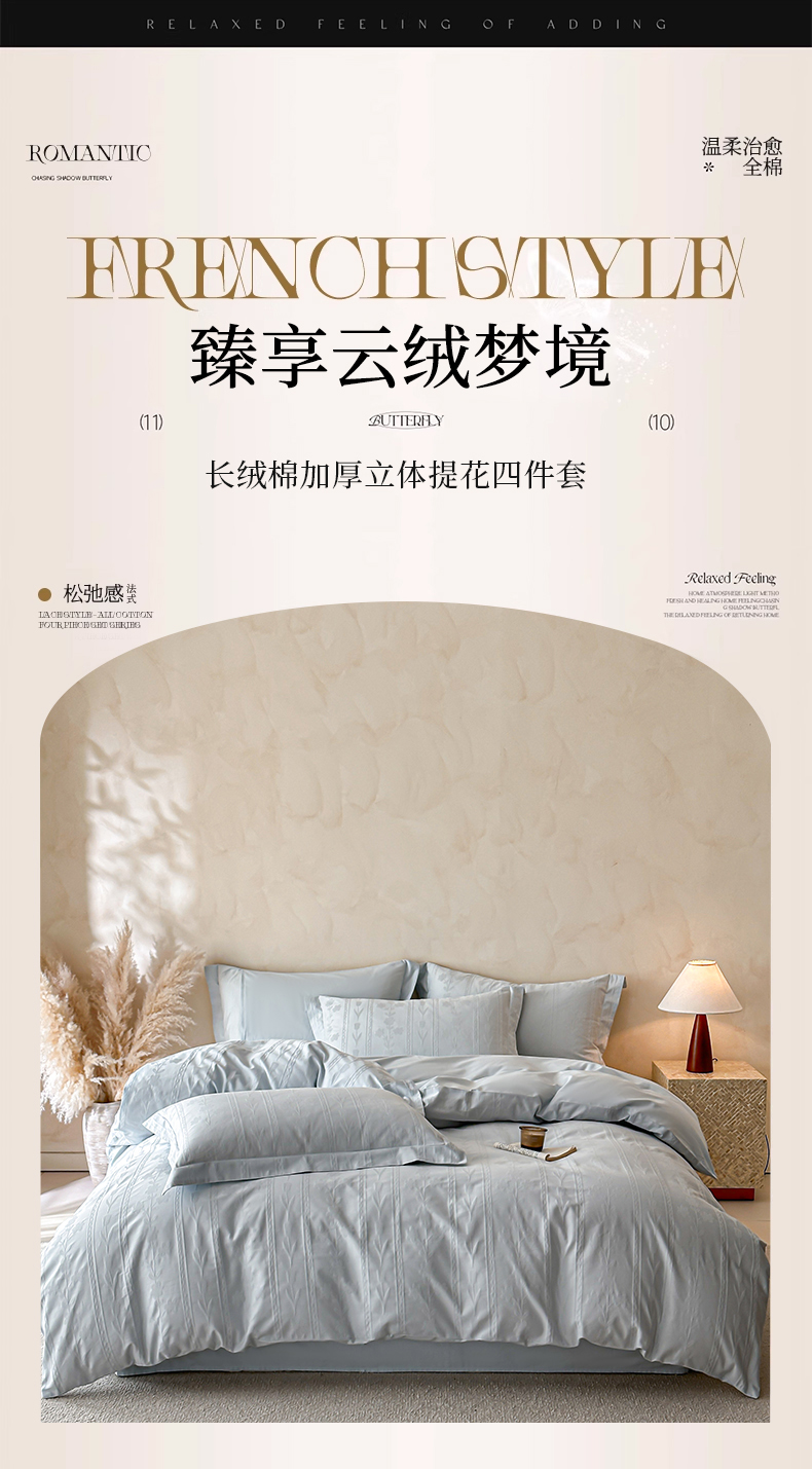 当前位置: 91家纺网 > 商品网购 > 床品套件 > 四件套 > 长绒棉四件套 > 禾时 2026新款春夏全棉长绒棉立体提花四件套-花屿 淡雅蓝