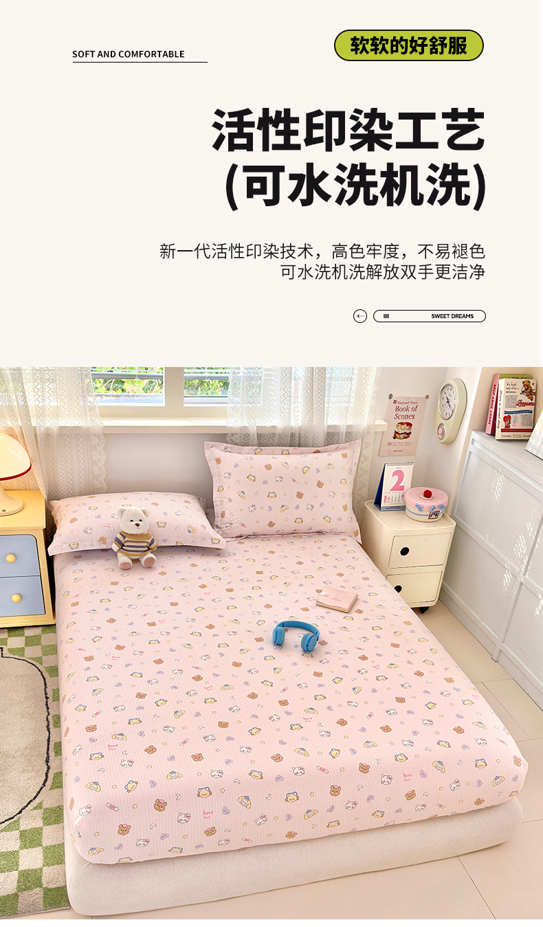 (总)拾物记 2026新款第一批12868A类全棉单品床笠系列(床笠宽度预留10厘米缩水尺寸, 90x200床笠高度15厘米,适合4-15厘米学生床垫使用,其他尺寸床笠高28cm 适合4-28厘米,森林伙伴,挽星河,爱心喵,彩虹兔,草莓小狗,乘风宇宙,刺绣潮声,点点森林熊,粉粉猫咪酱,滚滚绣球团,花漫歌,简笔小汪,镜子海洋粉,开心派对,快乐宇航员,蓝星动物园,美梦花园,咪咕日常,太空卫士,太空熊,糖果幼儿园,糖纸童年,甜蜜纪念日,星际仔仔,星星柯基,星星童话园,元气小布,云间甜梦
