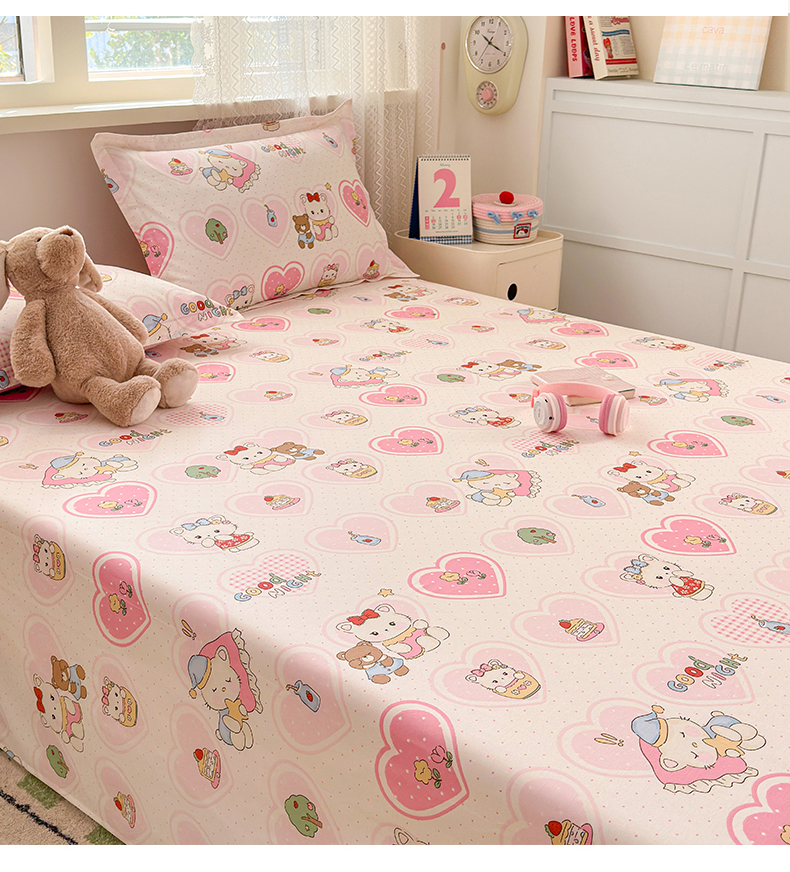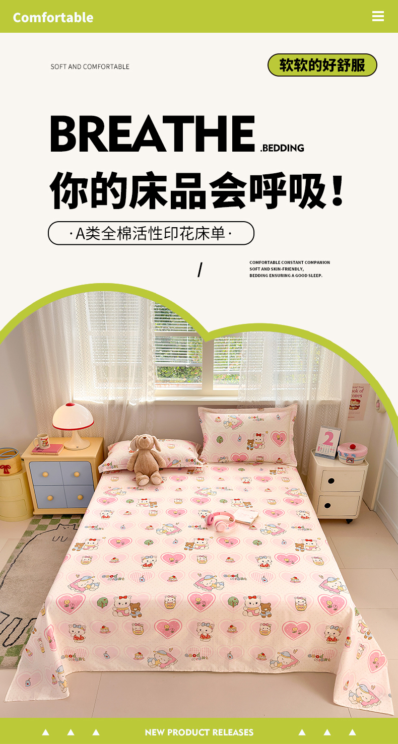 拾物记 2026新款第一批12868A类新疆全棉单品床单系列 爱心喵